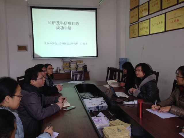 座谈会上,王教授与教师们就科研方法和科研项目申报进行了交流。王教授以跨学科研究为切入点,主要从申请者和评审者两个角度介绍了保证项目成功申请的因素,即选题的新意;项目发育的成熟度;项目的创新程度;前期成果的分量以及论证材料的填写技巧。王教授指出,高质量的科研工作及纵向科研项目的成功申请和立项对于提高教学质量、促进创新具有积极的推动作用。王教授鼓励大家把握学科发展前沿,积极开展跨学科研究,把科研与生活紧密联系起来,不断丰富自己,提升科研水平。