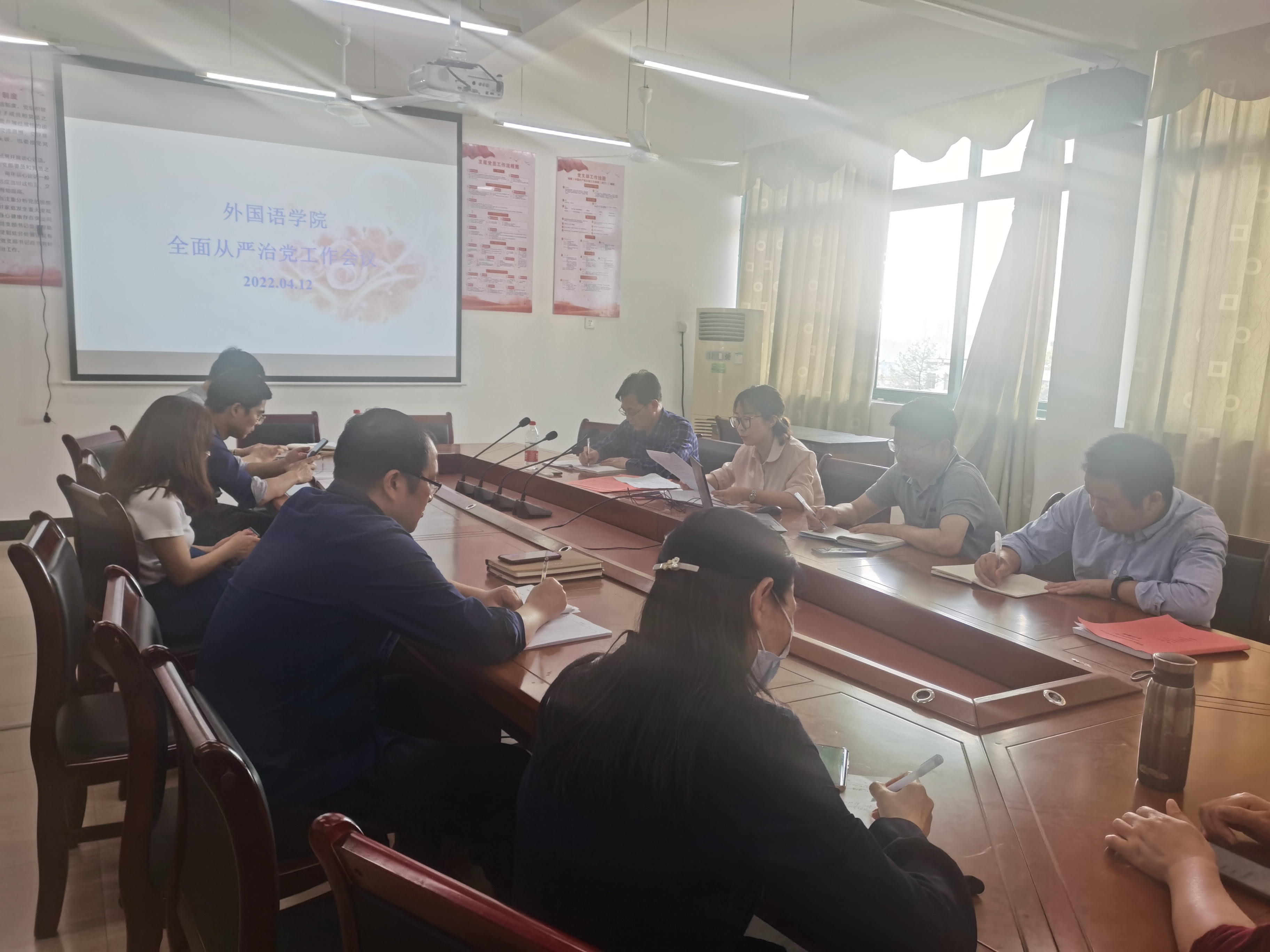 胡闽华总结了学院2021年全面从严治党工作取得的成效,同时对照学校党委的要求和全院师生的期待,结合实际,分析了存在的差距与不足。胡闽华强调,要提高政治站位,突出党的领导,营造风清气正的政治生态;要强化理论武装,不断提高政治素养;要夯实基层组织基础,加强巩固“三化”建设成果,结合学院语言优势特点推进“一支部一品牌”建设;要强化责任担当,明确职责,以身作则、严于律己,把作风建设抓得更实更细。