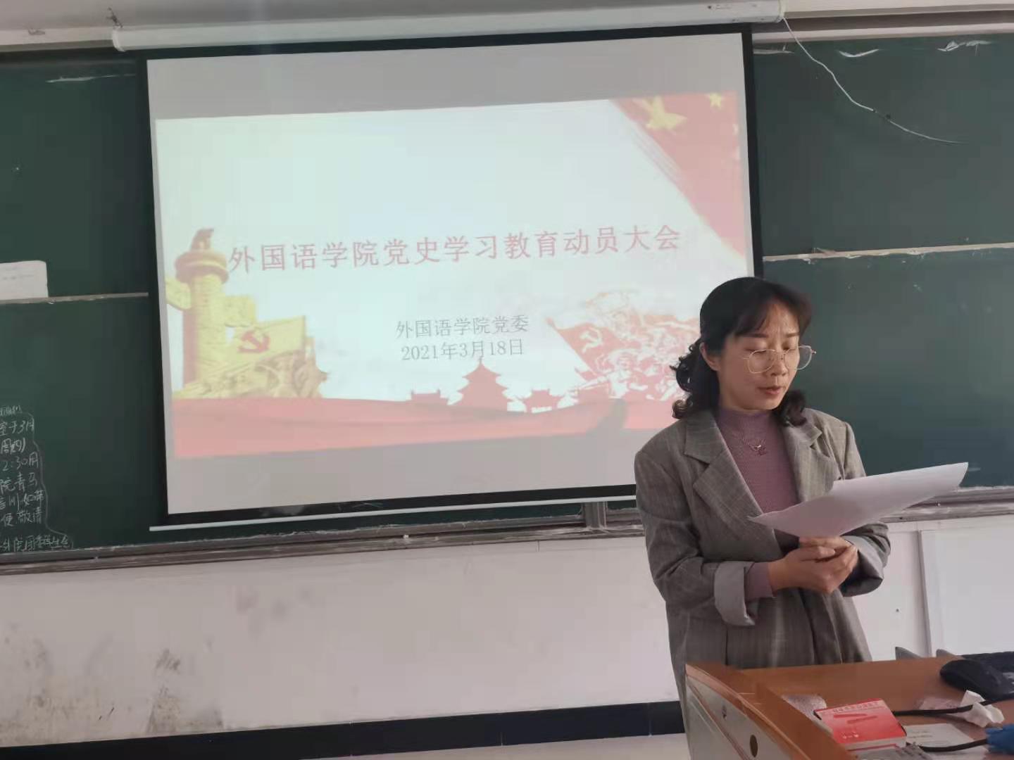 今年是中国共产党成立100周年,在全党全国深入开展党史学习教育之际,我院党委3月18日下午召开党史学习教育动员大会,深入学习贯彻习近平总书记在党史学习教育动员大会上的重要讲话精神,全面落实党中央、省委和学校党史学习教育的部署要求,对学院党史学习教育进行动员部署,迅速掀起党史学习教育热潮。党委书记胡闽华主持会议并作动员讲话,全体党员参加。
