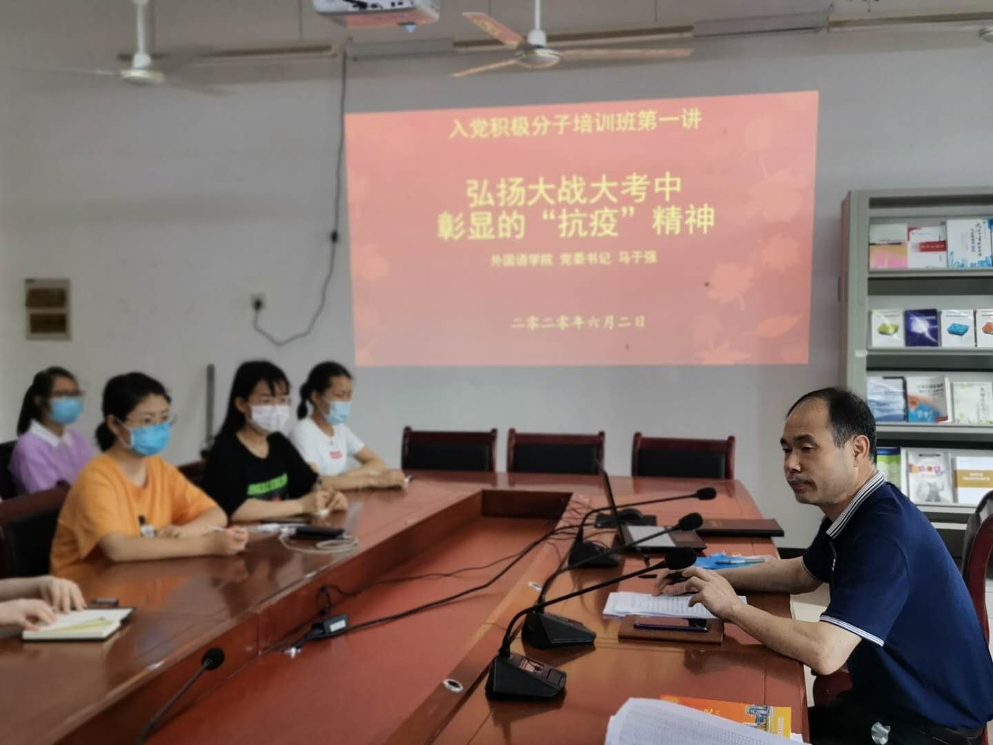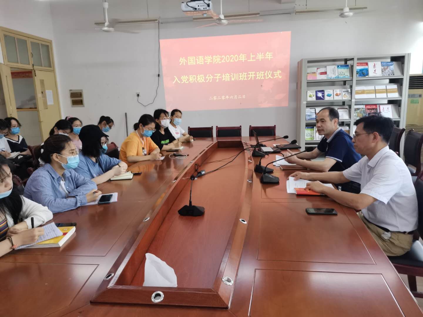 6月2日下午,外国语学院2020年上半年入党积极分子培训班开班典礼在六楼党员活动室举行。学院领导,专职组织员及26名入党积极分子参加了本次开班典礼。开班典礼由学院党委副书记李明敏主持。