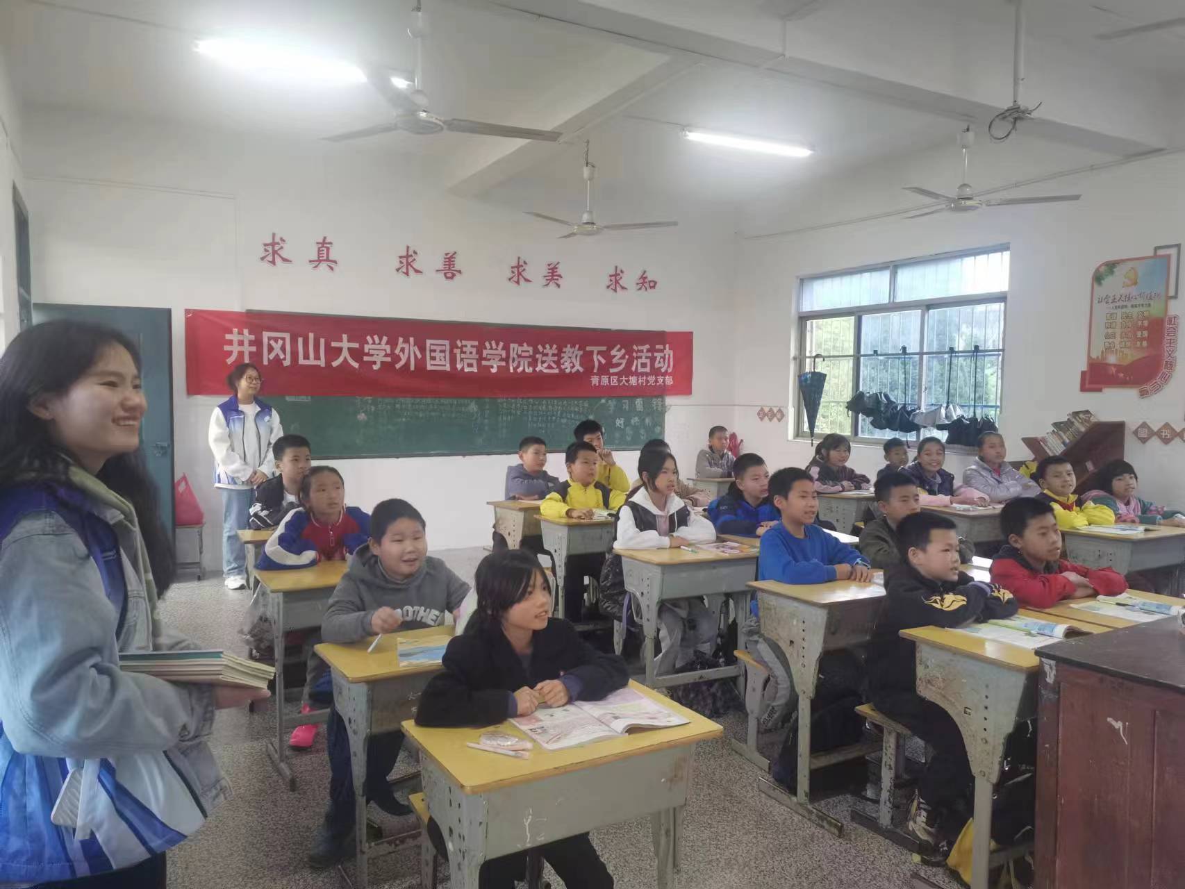 活动重点对青原区大塘村希望小学的五、六年级小学生分堂上课, 以单词及语法为中心展开讲解,通过寓教于乐的方式,让小朋友们感受学习外语的乐趣,鼓励他们通过口语练习分享自己的学习体会,并随堂进行互动。