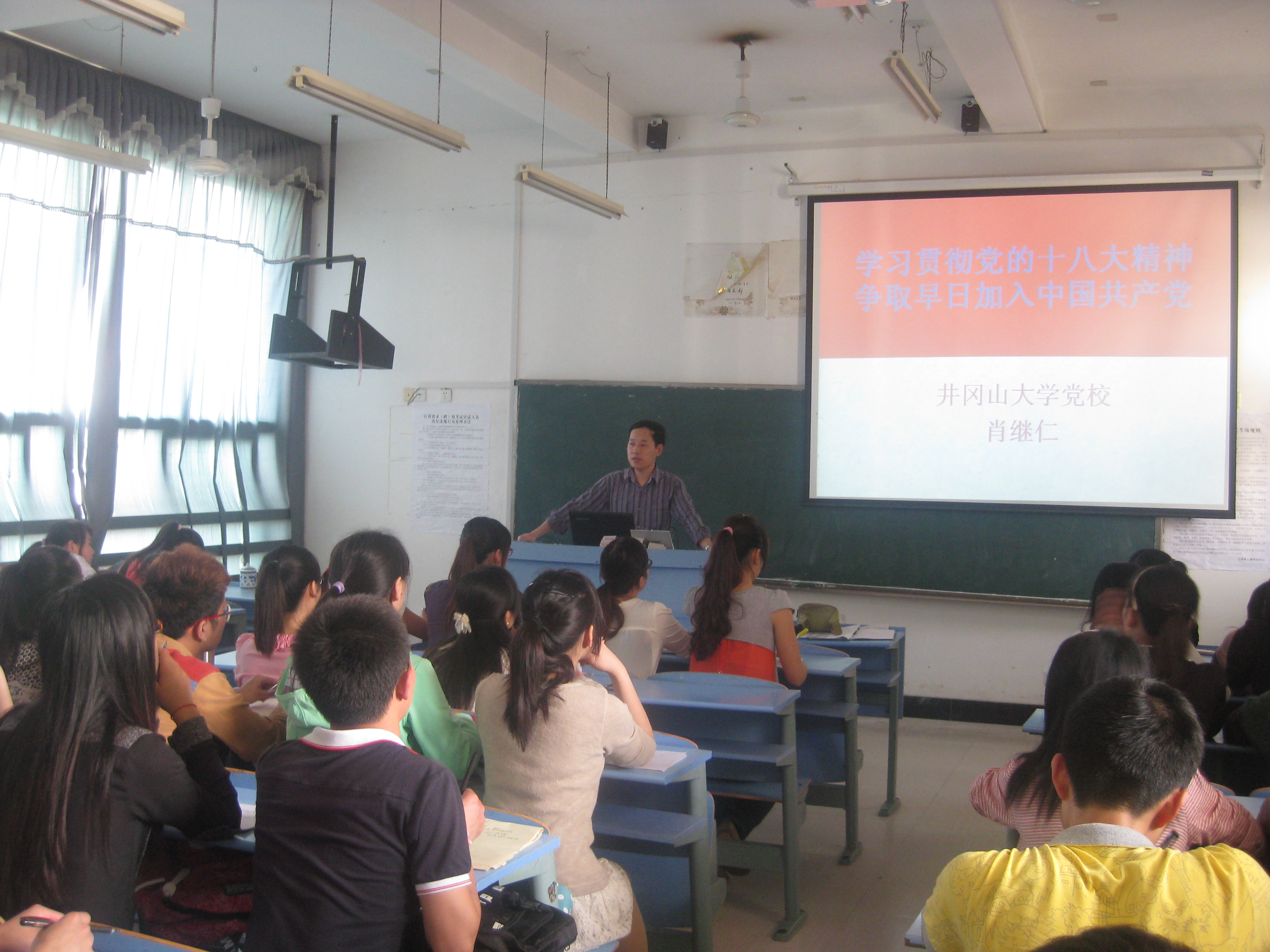 肖继仁为大家作了《学习贯彻党的十八大精神,争取早日加入中国共产党》的报告。报告重点介绍了十八大召开的背景、国内外形势的机遇和挑战,十八大精神的主要内容,以及深刻领会十八大精神的几点要求,并结合当前学生广泛关注的理论和社会热点问题,进行深入分析,帮助广大学生进行正确的社会观察,激发学生成才报国的热情和责任感。报告语言生动、逻辑性强,对于大家深刻理解、准确把握、贯彻落实好十八大精神有极大的启发和帮助。
