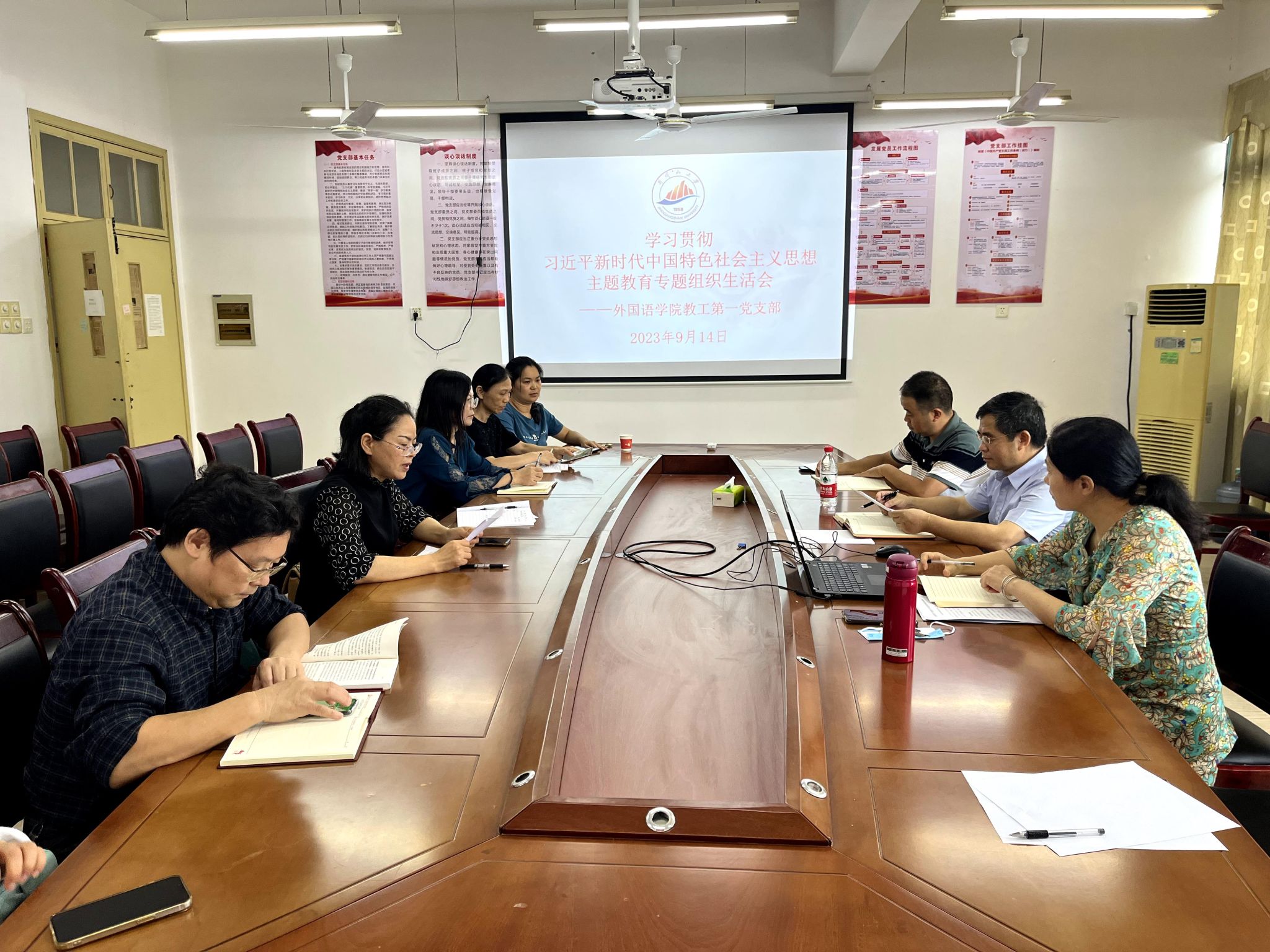 根据《外国语学院学习贯彻习近平新时代中国特色社会主义思想主题教育专题组织生活会方案》要求,9月14日下午,外国语学院各党支部召开主题教育专题组织生活会,学校党委常委、副校长肖宜安,学院党委班子成员以普通党员身份参加并指导所在党支部专题组织生活会。