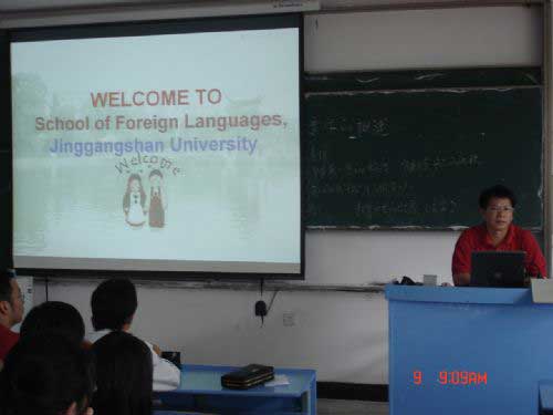 袁院长从专业设置、课程设置、课程简介以及外语学习方法等方面进行了条理清晰的、详细的讲解,对学生进行了专业思想教育,为07级新生即将开始的大学学习生活指明了方向,帮助他们确立了明确的学习目标。9月9日上午,外国语学院为2007级新生举行入学教育非常重要的一项活动——名师讲座。外国语学院副院长袁邦株博士为07级250多名新生作了一场精彩的报告。