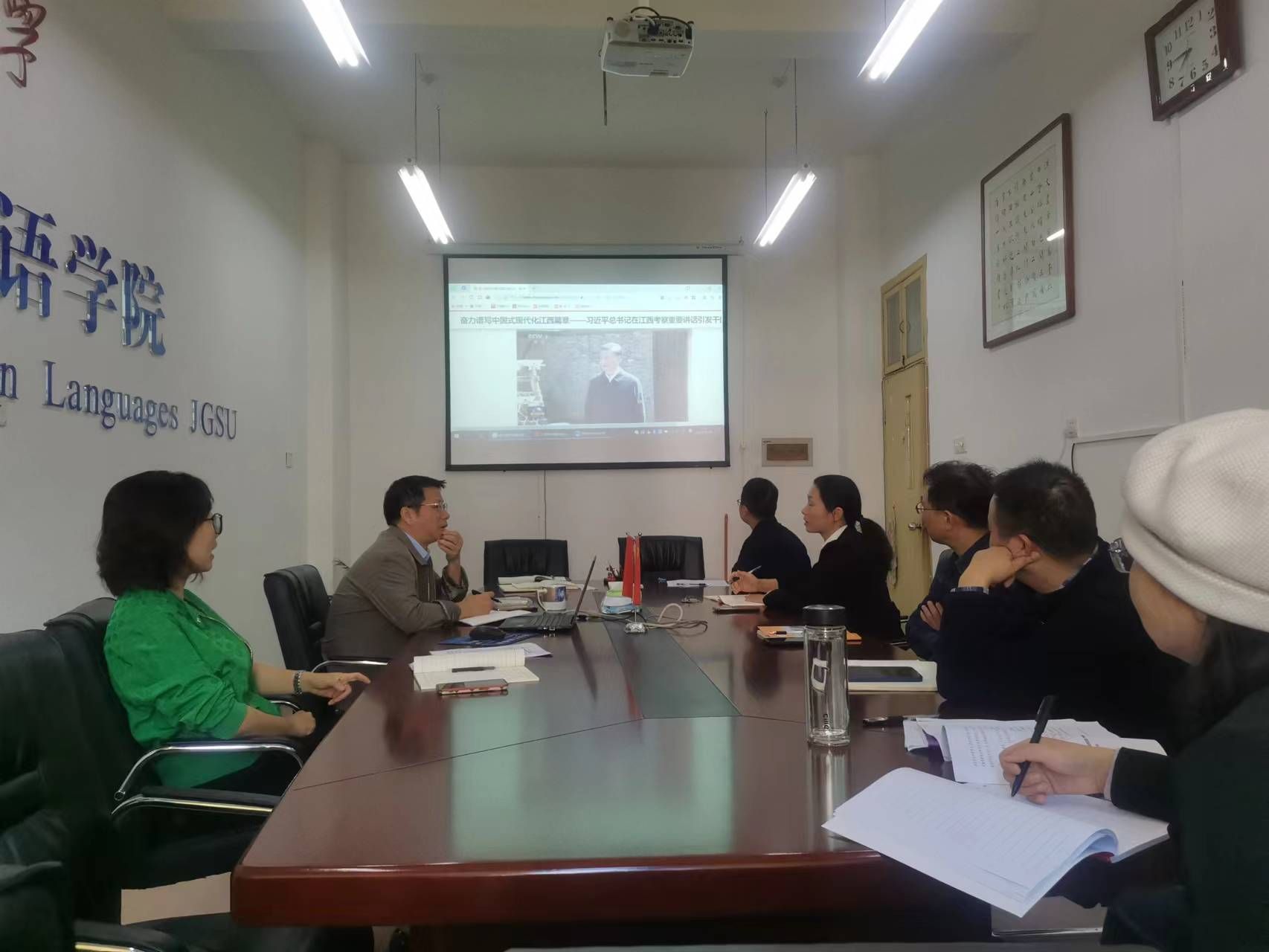 10月24日,外国语学院召开党委理论学习中心组学习会,学习习近平总书记在江西考察时的重要讲话精神、习近平总书记在中央政治局第五次集体学习中发表的关于教育强国的重要讲话精神等内容。会议由学院党委书记胡闽华主持,全体党委理论学习中心组成员参加会议。