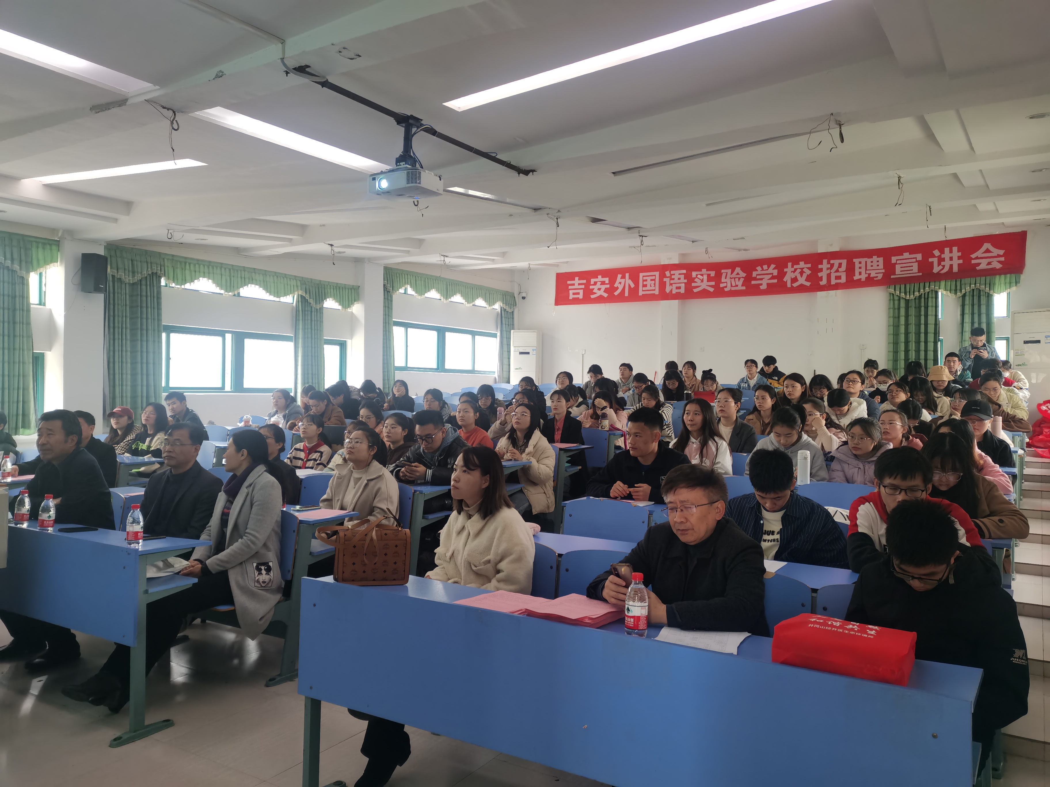 招聘会分校情宣讲、现场答疑和招聘面试三个环节。吉安外国语实验学校向参加招聘的毕业生重点介绍了学校的基本情况和招聘岗位、薪资待遇、入职培训等情况。并分9个学科分别进行现场面试、试讲。最终共选拔出26名毕业生达成初步签约意向。