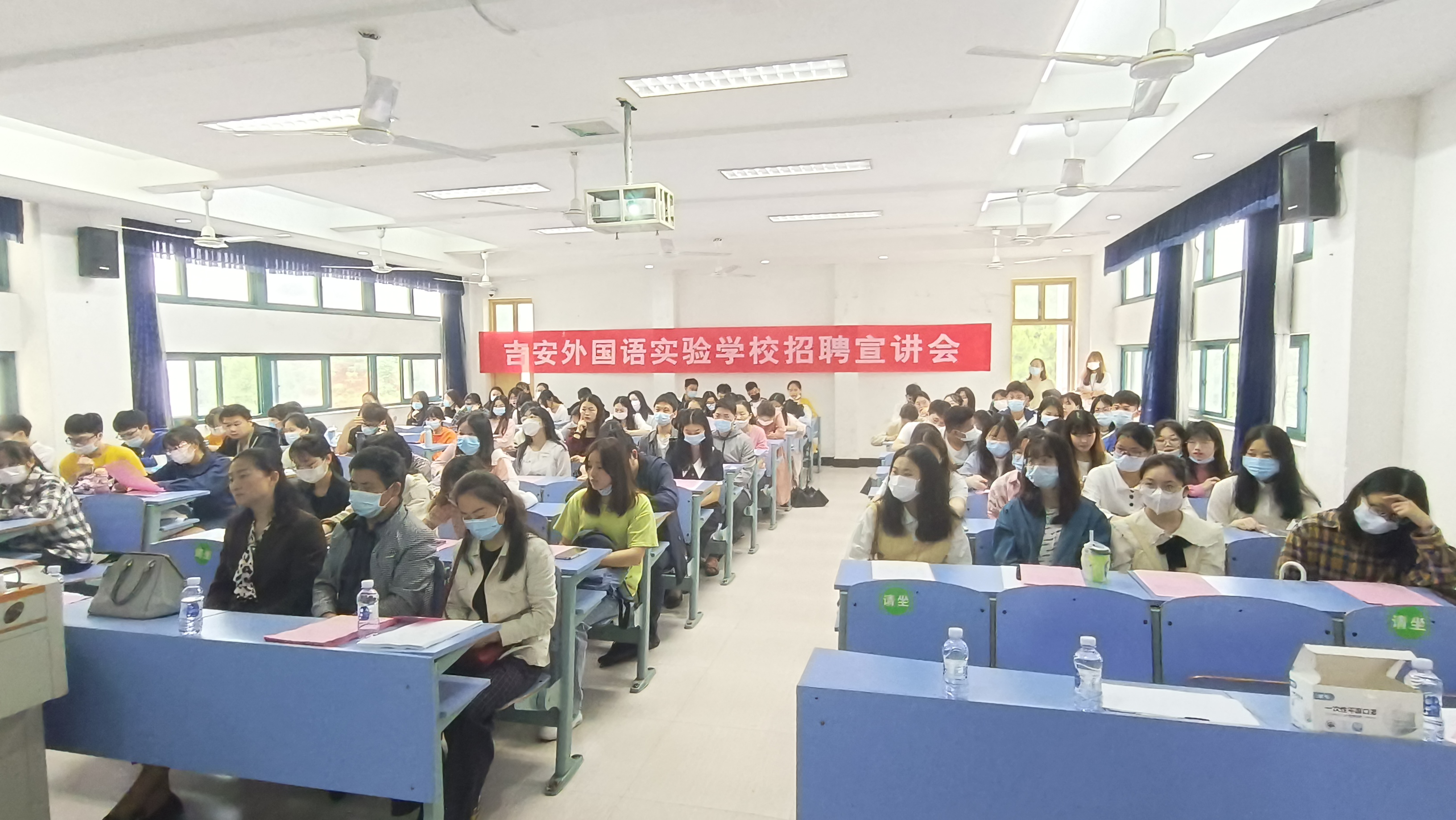 为贯彻执行党中央、国务院关于“稳就业”“保就业”工作的重要决策部署,我院科学研判、精准施策,在确保疫情防控安全的情况下,引进吉安外国语实验学校来学校召开2022届毕业生专场线下招聘会。校党委常委、副校长肖宜安、招生就业处、学院负责人、吉安外国语实验学校校长刘小萍一行五人和全校130余名在校毕业生参加了本次招聘会。