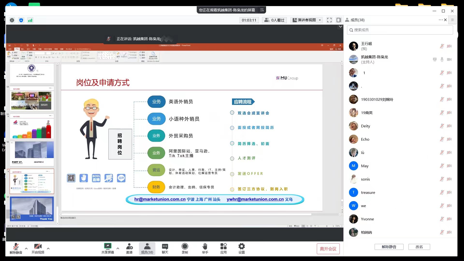 为更好地帮助2023届毕业生就业,宁波凯越集团11月1日来我院召开2023届毕业生线上专场招聘会,19级英语、西语、德语、日语专业的50余名毕业生参加了线上宣讲会。