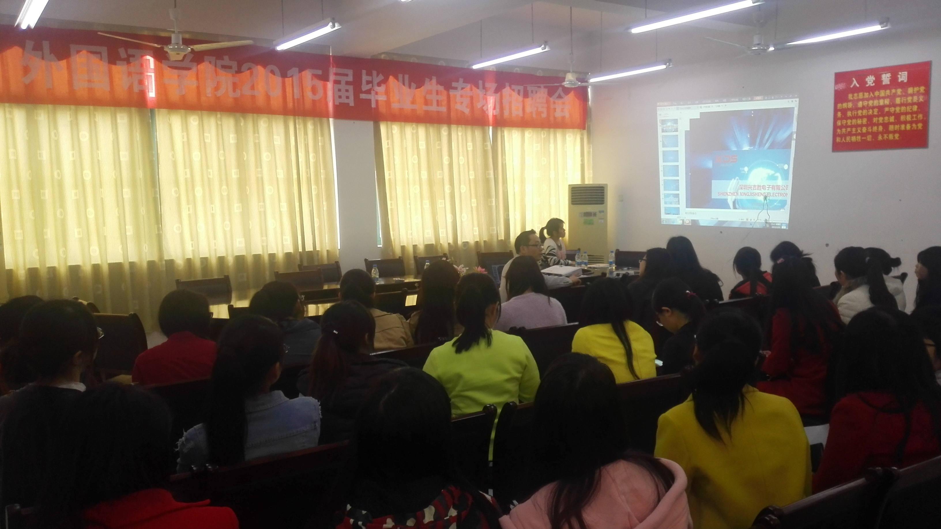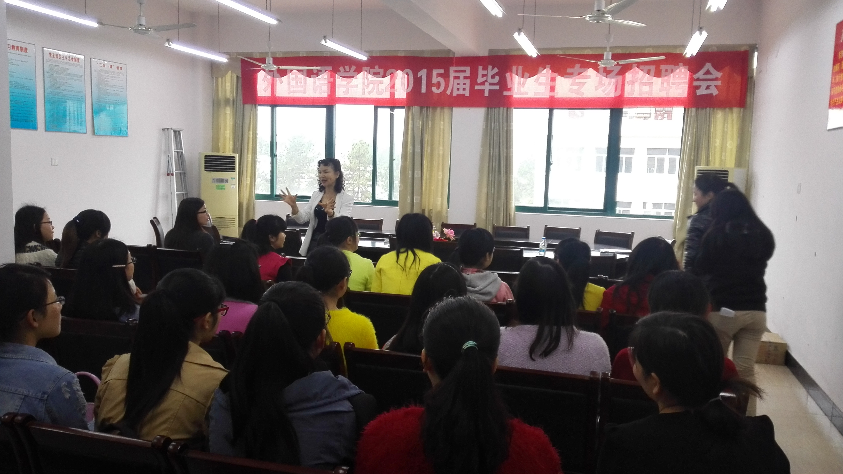 为进一步做好学院2015届毕业生就业工作,搭建用人单位与毕业生双向选择的平台,3月19日,外国语学院在9栋5楼会议室召开毕业生专场招聘会。