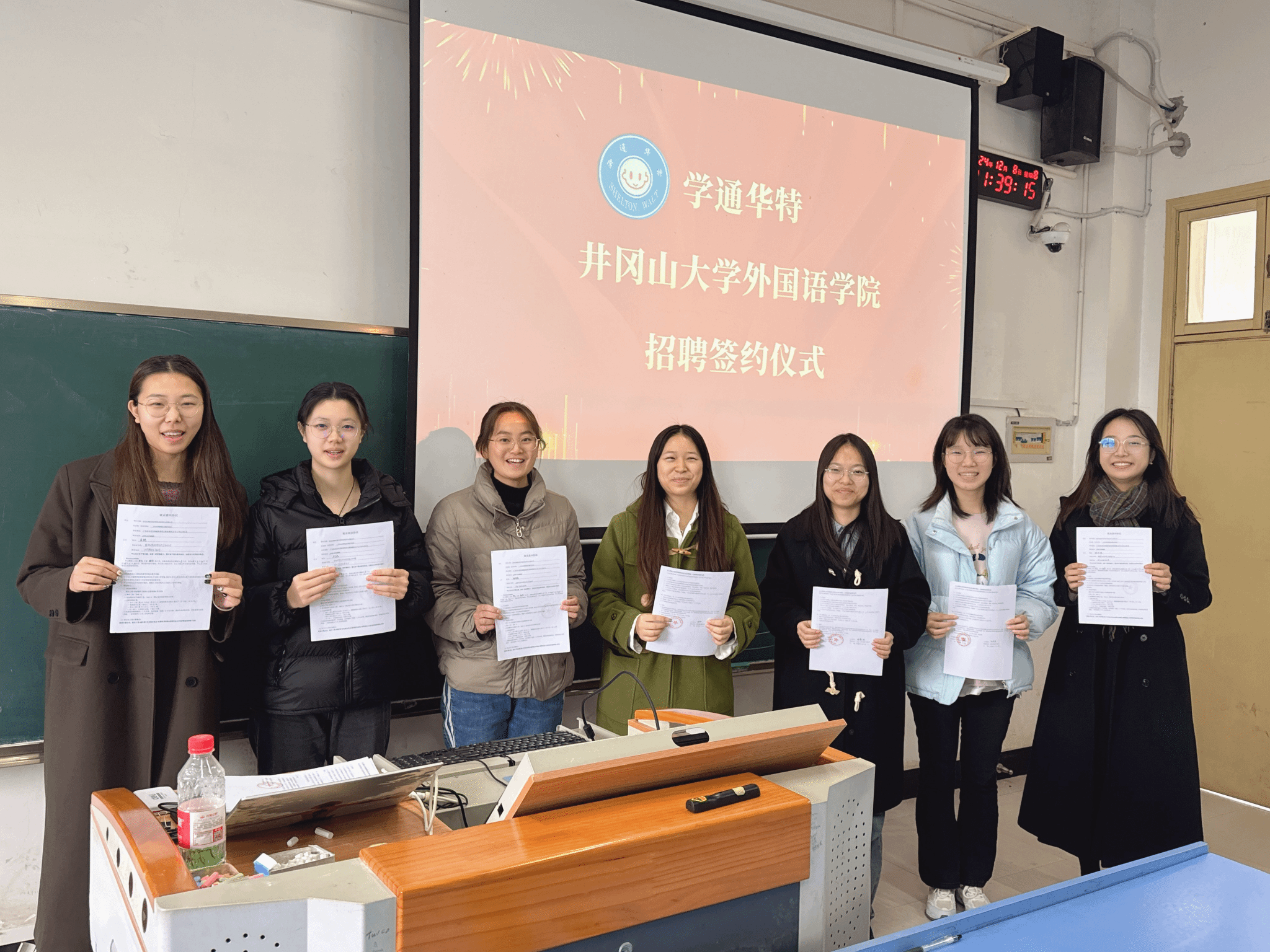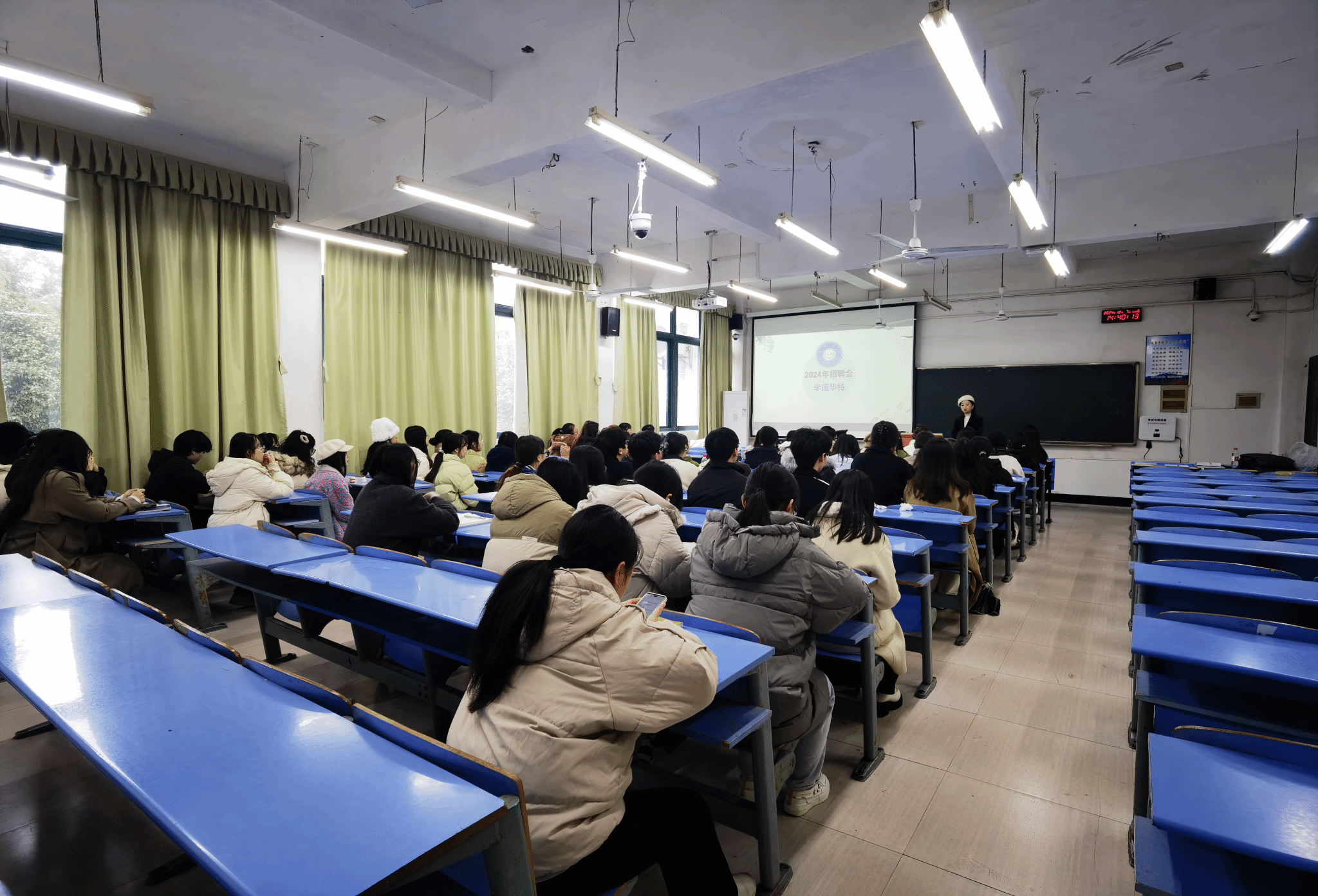 宣讲会上,学通华特英语培训中心人事总监Lily播放了公司的视频简介,并向毕业生们详细介绍了培训中心的发展历程和企业文化、岗位前景、福利待遇和招聘职位。学院优秀校友、学通华特吴准老师分享了从井大毕业后到华特工作的成长历程。随后,学生就薪资待遇、晋升渠道等问题进行了深度交流。接着,对有就职意愿的同学进行口语面试和15分钟英语试讲。