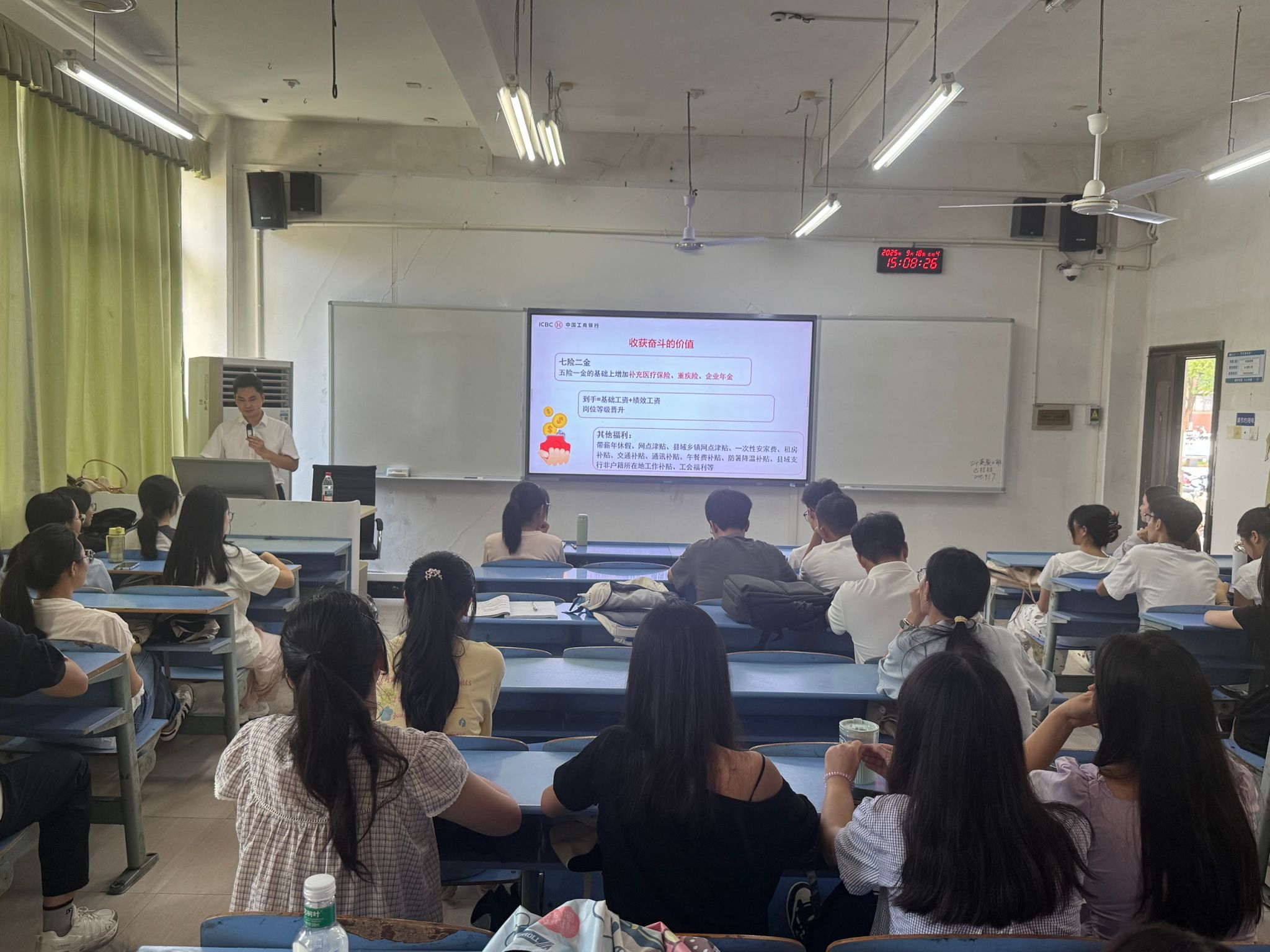 为创造良好的就业氛围,帮助毕业生顺利就业,9月18日中国工商银行来我院召开2026届毕业生专场招聘会,22级60余名毕业生参加了此次招聘宣讲会。