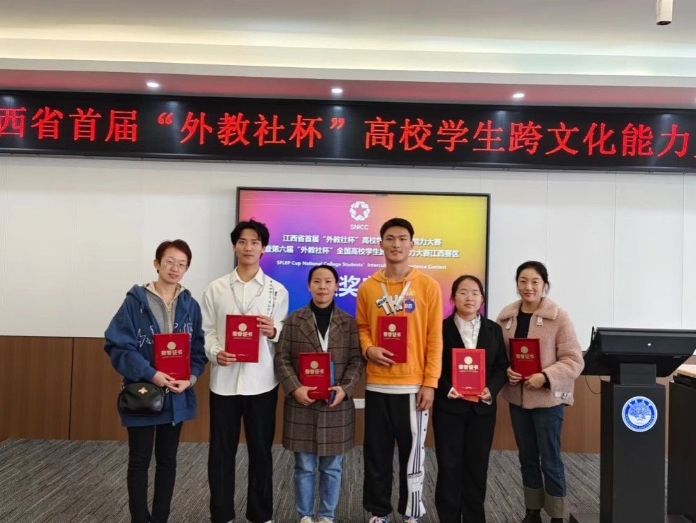 11月25-26日,江西省首届“外教社杯”高校学生跨文化能力大赛暨第六届“外教社杯”全国高校学生跨文化能力大赛江西赛区比赛在南昌大学成功举行。在我校外国语学院的精心组织和指导教师的认真指导下,由我校2022级口腔1班陶表旺、韩翼泽、赵悦悦三位同学组成的团队以全省第5名的优异成绩获得本次比赛的二等奖,外国语学院杜小红、蔡晓蕙、包乐君三位教师获优秀指导老师。