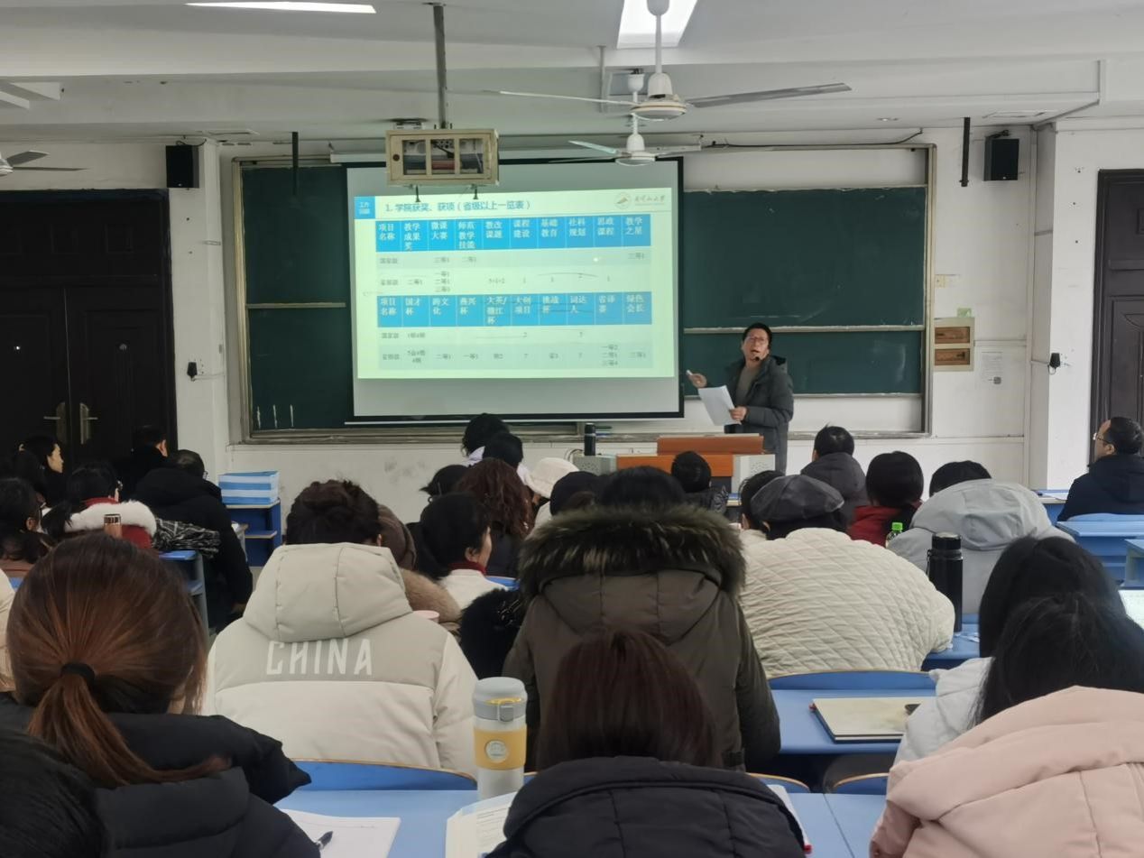 院长袁邦株传达了学校党委全委(扩大)会议和2024年春季新学期工作部署会精神,对学院2024年本科教学审核评估、综合考核、人才引进、国家一流课程建设和省级教学成果奖申报等重点工作做了详细解读和部署推进。他强调,学院要在学校党委行政的坚强领导下,拿出“志存高远绘宏图,锐意进取谱新篇”的决心、秉持“破旧立新展气象,求真务实铸华章”的态度、展现“同舟共济扬帆起,携手并肩创佳绩”的胸怀,锚定新一年学院工作目标和学校发展目标,充分发挥“2+黑”效应和作用,狠抓工作落实,把学院工作不断提升更高水平,推向更高台阶,助力学校高质量发展。