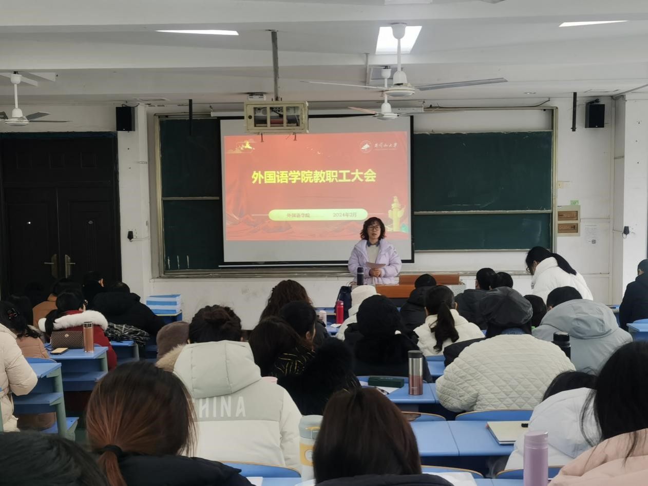 2月25日上午,外国语学院召开2024年春季开学教职工大会,总结工作、谋划思路、明确任务、部署工作,党委副书记李红军主持会议,全体教职工参加。