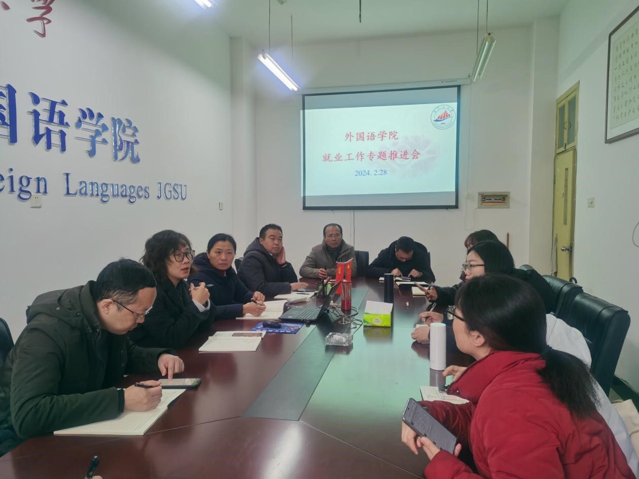 为进一步做好毕业生就业创业工作,针对性地开展就业工作,外国语学院于2月28日下午召开了2024届毕业生就业创业工作推进会,学院党政班子领导及就业工作领导小组成员参加会议。