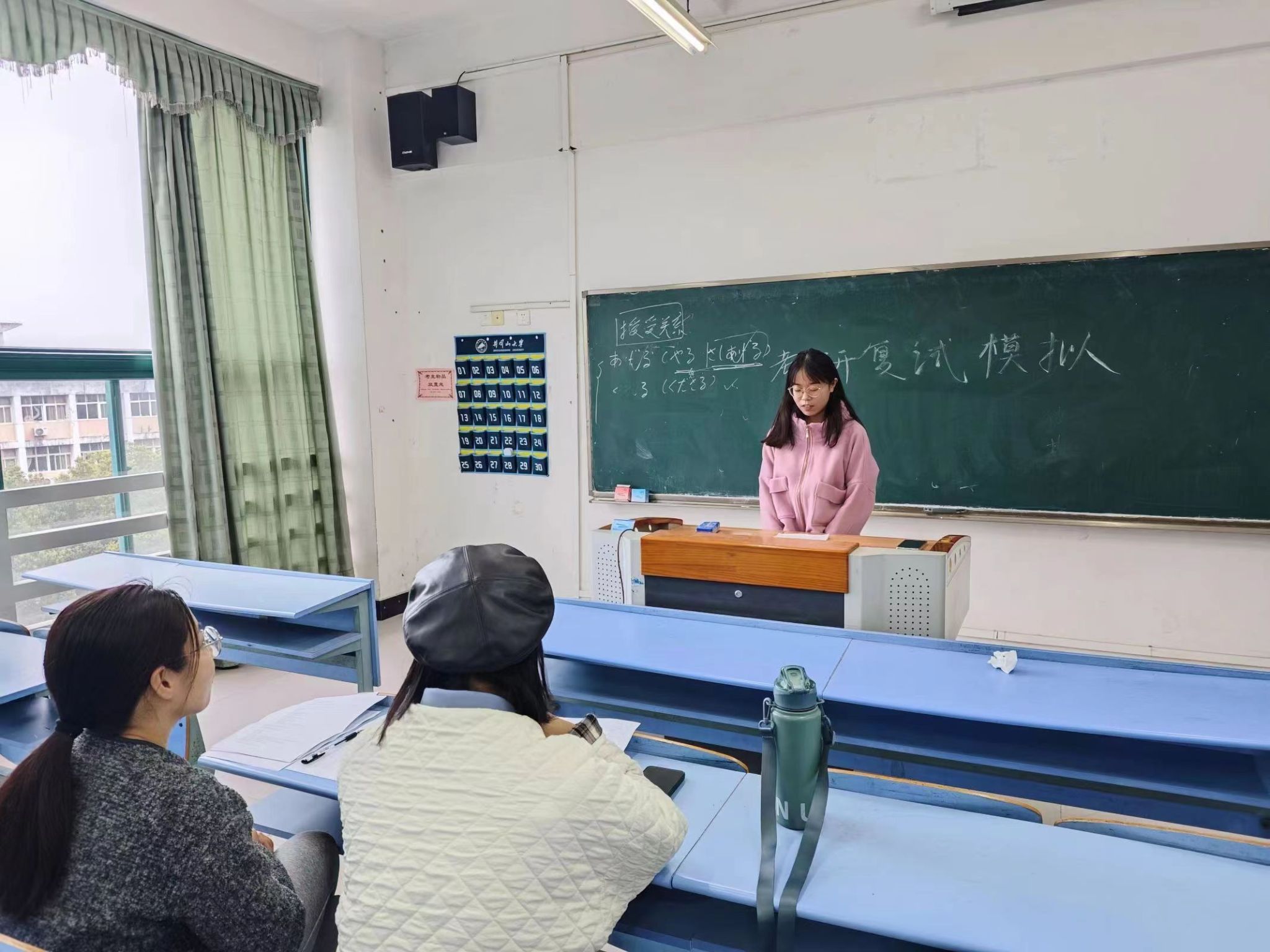 林长洋副院长代表学院表达了对初战告捷同学的祝贺,同时希望大家坚定信心、放松形态、精心准备,取得复试成功。考研班主任尹根德老师就调剂和复试常见问题进行辅导。在随后的模拟面试过环节,专业教师对考生表现做了逐一点评和有针对性的指导。