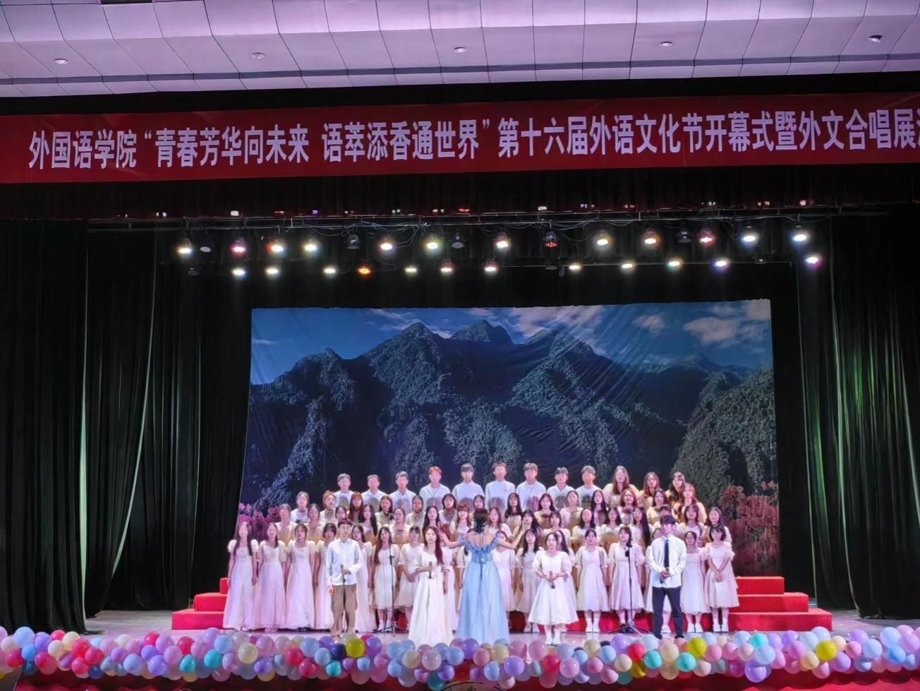 为丰富校园文化生活,彰显外语办学特色,4月28日,外国语学院在学生会堂举办“青春芳华向未来,语萃添香通世界”第十六届外语文化节开幕式暨外文合唱展演。校党委学生工作部部长毛金文,校团委副书记夏婷婷,学院班子成员、全院师生参加活动。