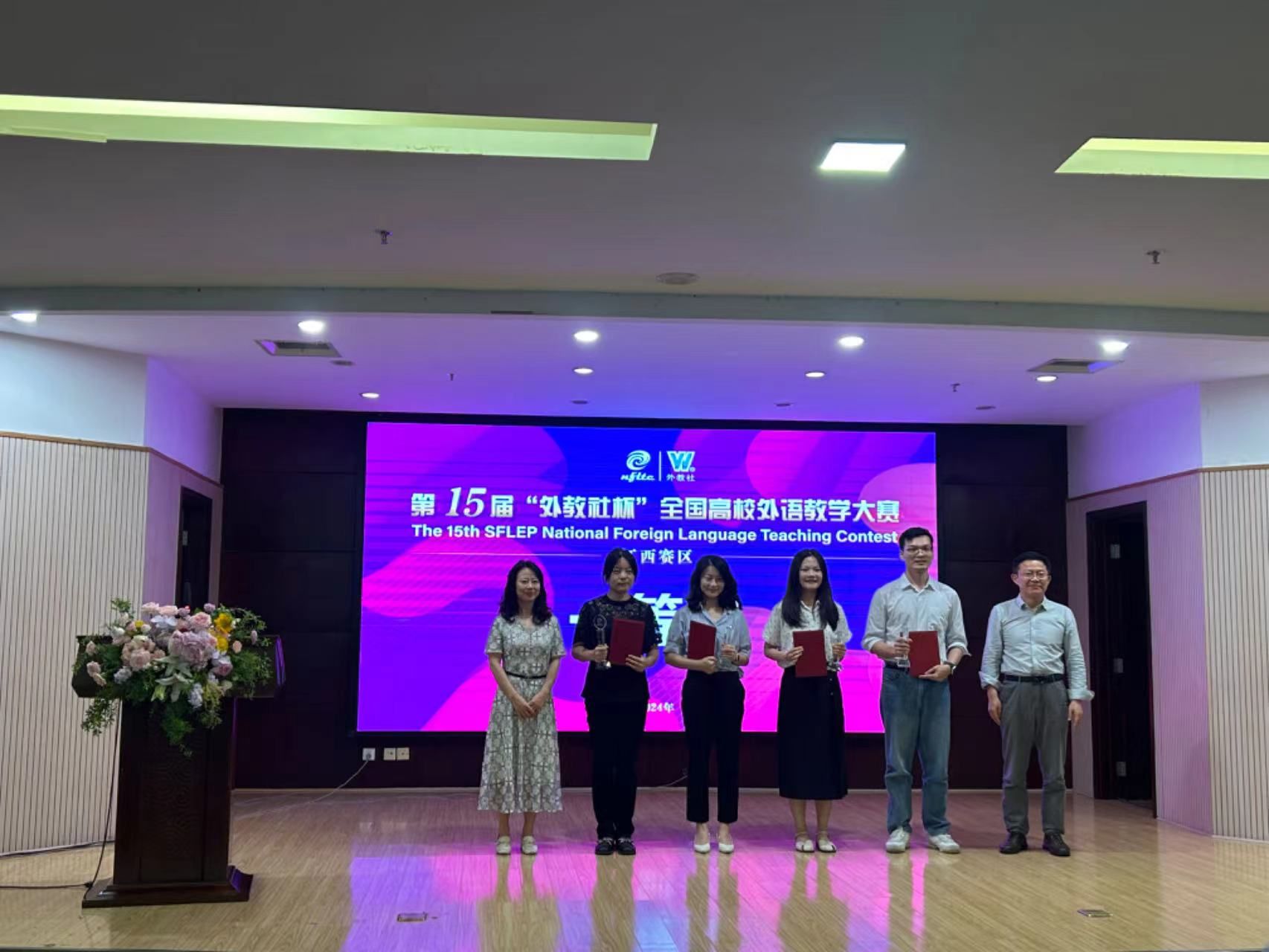 2024年6月22日-23日,第十五届“外教社杯”全国高校外语教学大赛江西赛区比赛在江西师范大学瑶湖校区举行。外国语学院派出2名教师参加比赛,与来自省内多所高校的教师同台竞技。经过激烈角逐,周诠超老师获得商务英语组一等奖。