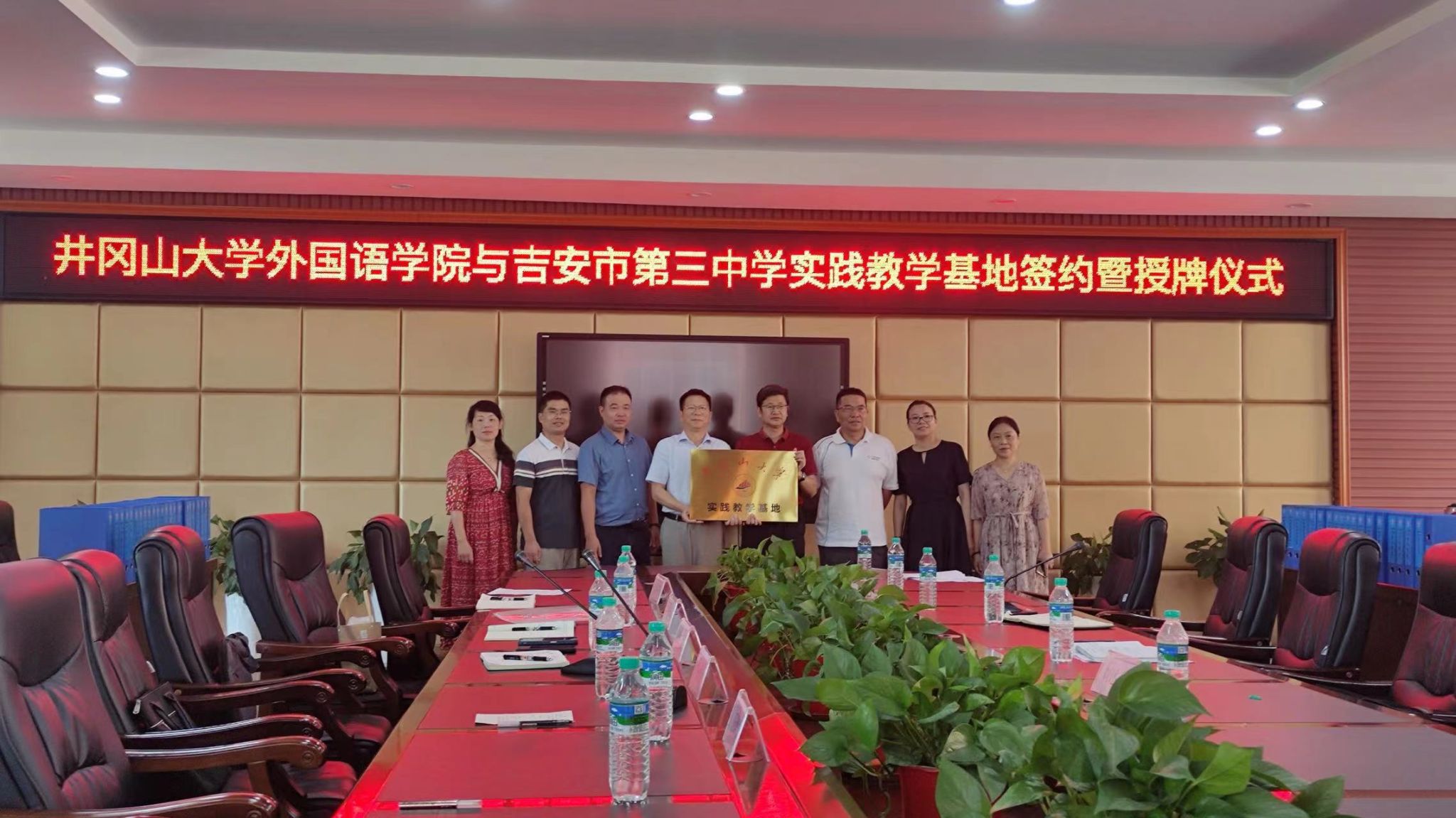 为进一步推进校地合作,创造良好的教育实践环境,提升英语师范生培养质量,7月16日,外国语学院袁邦株院长一行赴吉安市第三中学举行实践教学基地授牌仪式,吉安三中校长刘东波及相关负责同志参加。