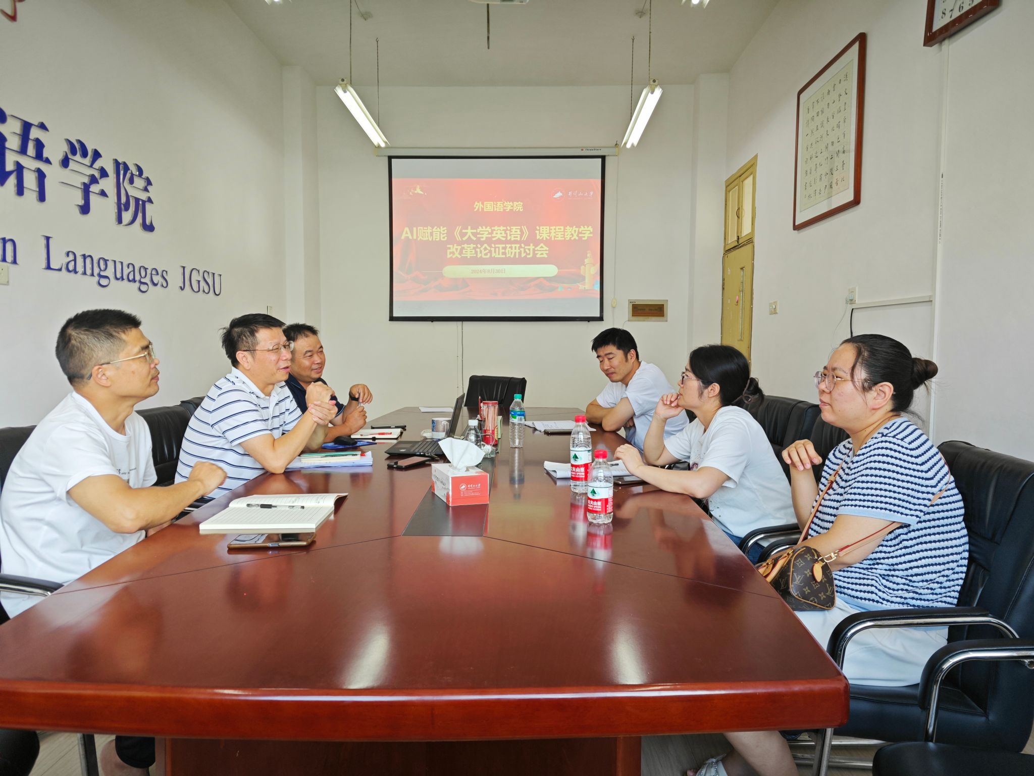 外国语学院召开AI赋能《大学英语》教学改革论证会 2024年08月31日 学院新闻 8月30日下午,外国语学院召开AI赋能《大学英语》课程教学改革论证会,学院领导及大学外语教学部负责人及骨干教师参加。参会人员结合学校AI赋能教育教学改革研讨会精神,以及学校领导和教育专家主旨讲座内容,深入讨论了利用AI技术优化教学内容、提升教学效率、提升个性化学习体验的途径和方法,初步确定了AI赋能《大学英语》课程教学改革的路径和目标,为推动2024级本科生《大学英语》课程教学转型奠定了坚实基础。 分享到:QQ好友微信QQ空间新浪微博人人网复制网址打印
