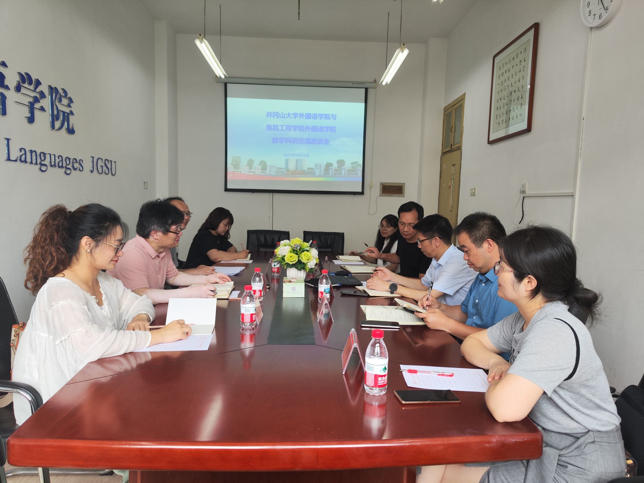 座谈会上,双方介绍了各自学院发展现状,就如何提升大学英语四六级考试成绩、推进人工智能赋能大学英语课程教学改革、开展“外语+”跨学科跨专业融合创新提升、人才培养方案修订等方面交流经验和意见,并就翻译学科建设和翻译硕士授权点申报等问题展开深入交流。南昌工程学院外国语学院对我院在凝练“红色外语”特色、打造优质教学成果方面取得的成果给予了高度评价,并分享了他们在“外语+工程”教育方面的成功做法。