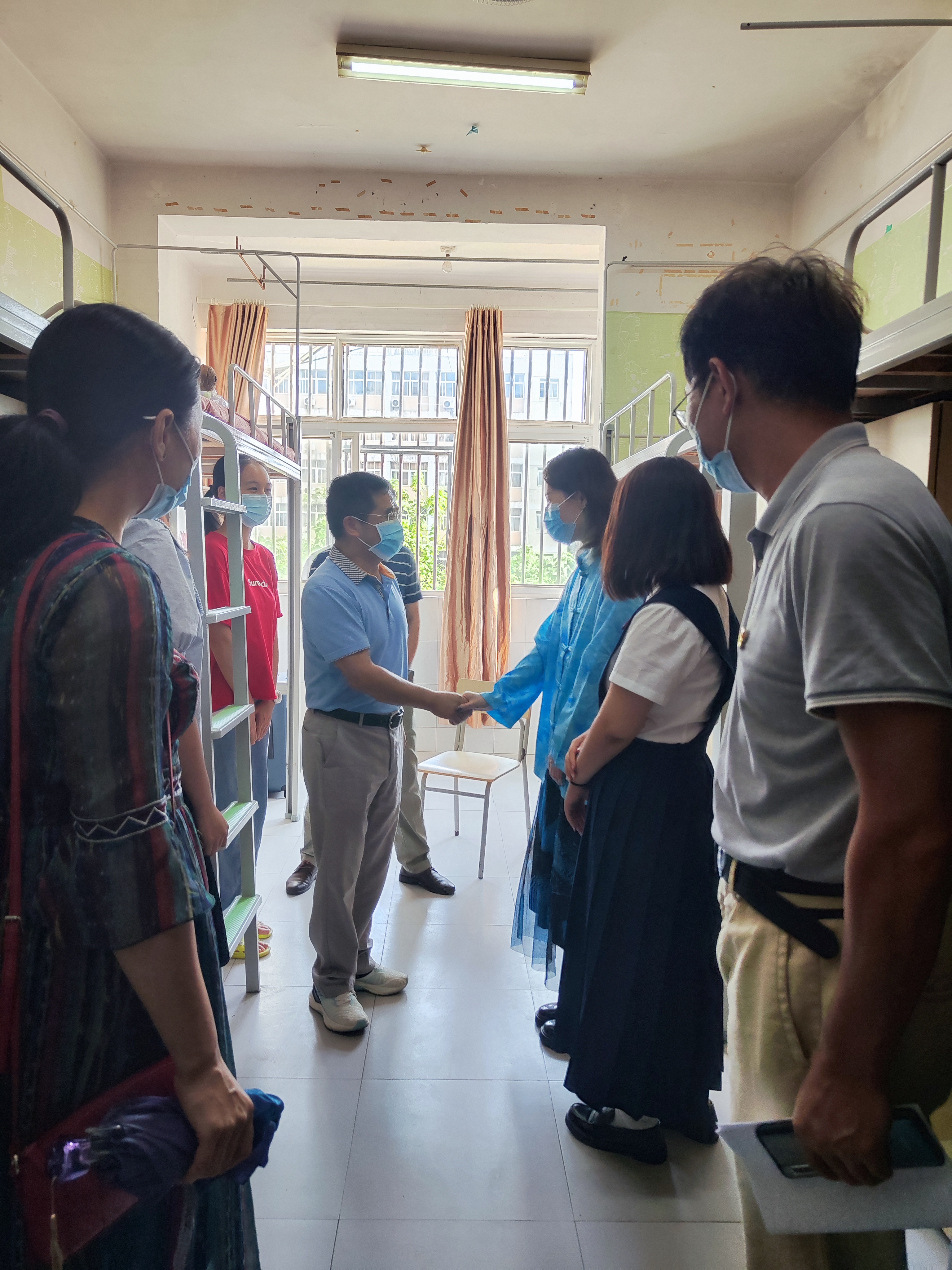 肖宜安走进学生宿舍,认真察看宿舍环境、安全设施等情况,并与同学们亲切交谈,详细了解他们进校后的学习、生活、疫情防控等方面的情况,希望同学们尽快熟悉校园环境,尽早适应大学生活,并鼓励同学们要打好坚实基础,专注学业提升,树立远大志向,做好大学生涯规划,无悔青春,无愧初心。肖宜安还要求学院在疫情防控严峻形势下,要深入了解新生的实际困难、相关诉求,主动关心学生,积极为新生办实事,营造舒适安全温馨的学习生活环境,进一步提高学生的满意度。