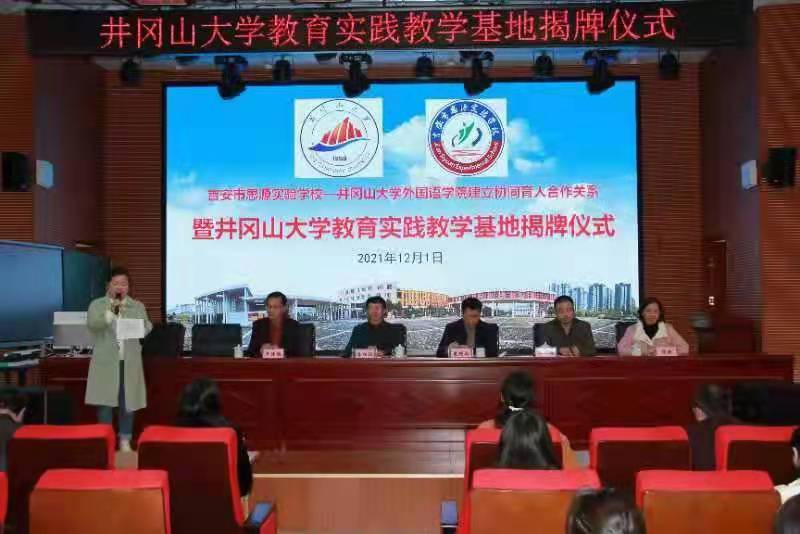 签约仪式上,袁邦株院长首先感谢吉安市思源实验学校对我院师范生培养的大力支持,简要介绍了我院基本情况,尤其是英语专业在人才培养、科学研究、社会服务和文化传承等取得的成绩,并对未来双方的合作充满了期待。他指出,教育实习是师范生培养中的重要一环,此次签约是外国语学院与深入思源实验学校推进务实合作走出的更为坚实的一步,也是深入师范生人才培养改革,促进师范生成长在重要举措。