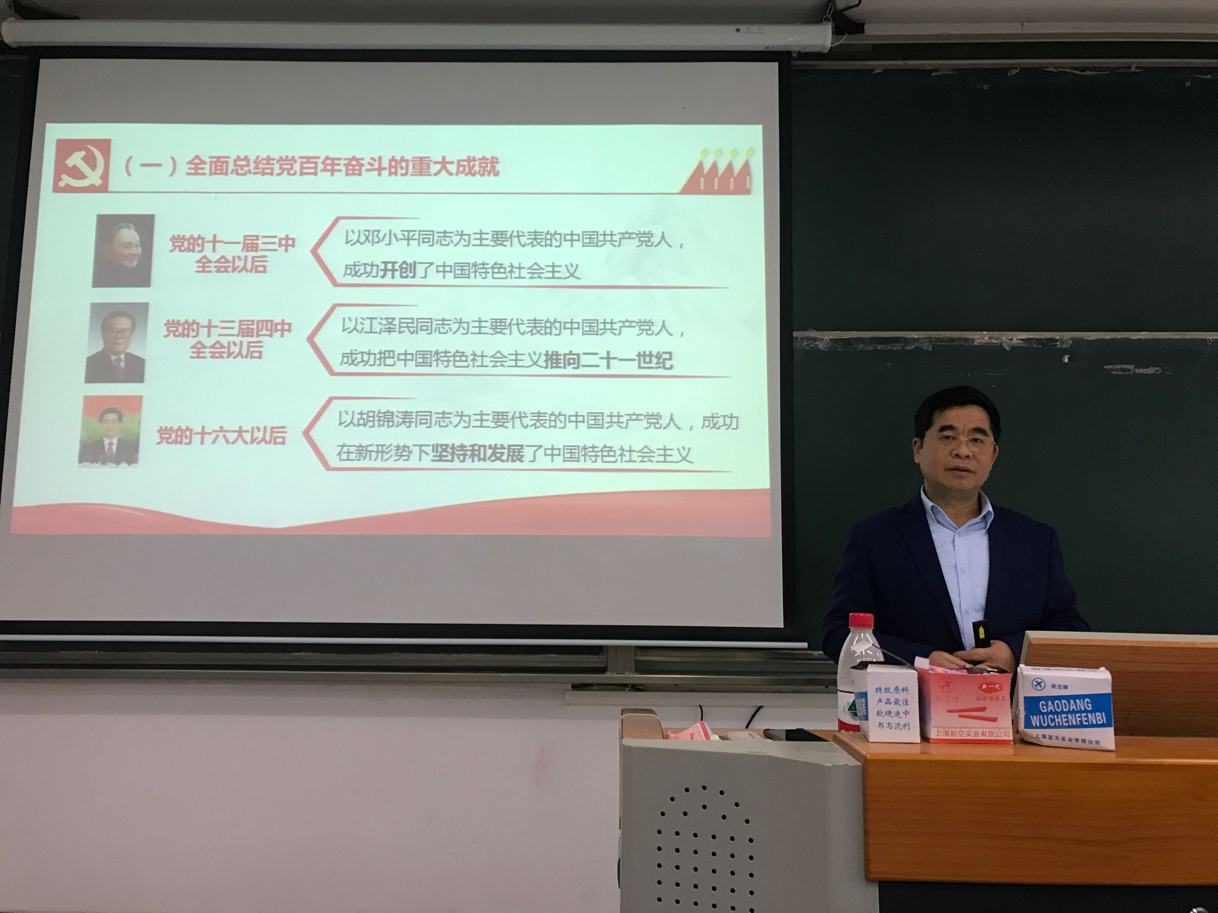 为深入学习贯彻党的十九届六中全会精神和省第十五次党代会精神,12月16日下午,校党委常委、副校长肖宜安教授到外国语学院宣讲党的十九届六中全会和省第十五次党代会精神。党委书记胡闽华及100余名学生党员共同聆听了讲座。
