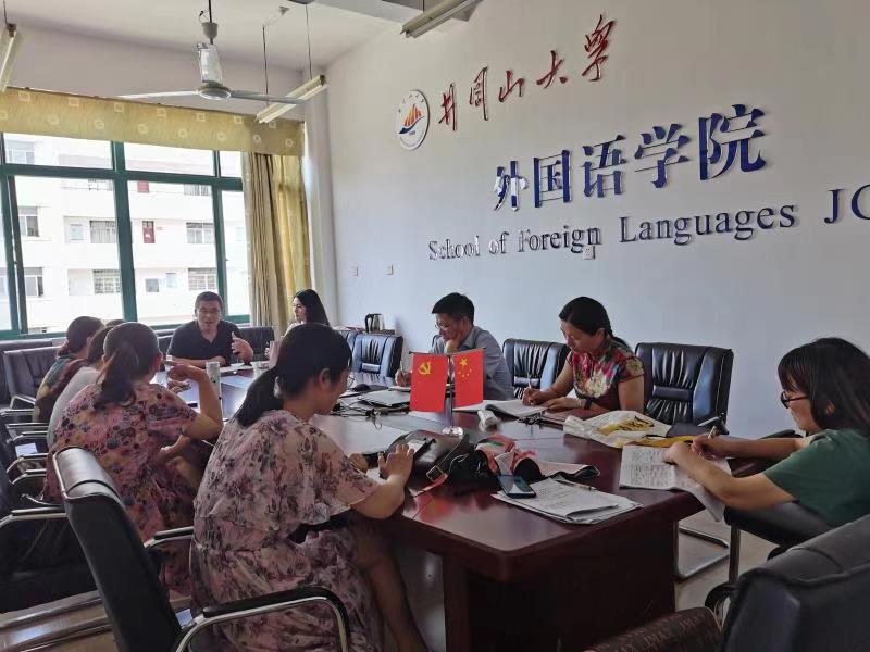 6月7日下午,我院在四楼会议室举行了江西省第十三届“外教社杯”教师教学技能大赛总结会。院长袁邦株出席总结会并讲话,副院长刘素芳、林长洋以及参赛教师和指导老师参加会议。