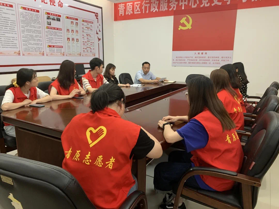 5月伊始,外国语学院志愿者每周安排二个下午赴青原区行政服务中心青年志愿服务站开展政务志愿服务工作,主要是针对所应事项进行应急处理、营商政策问答等。同时还承担“文明劝导员”工作,对一些不文明现象进行制止和劝导。
