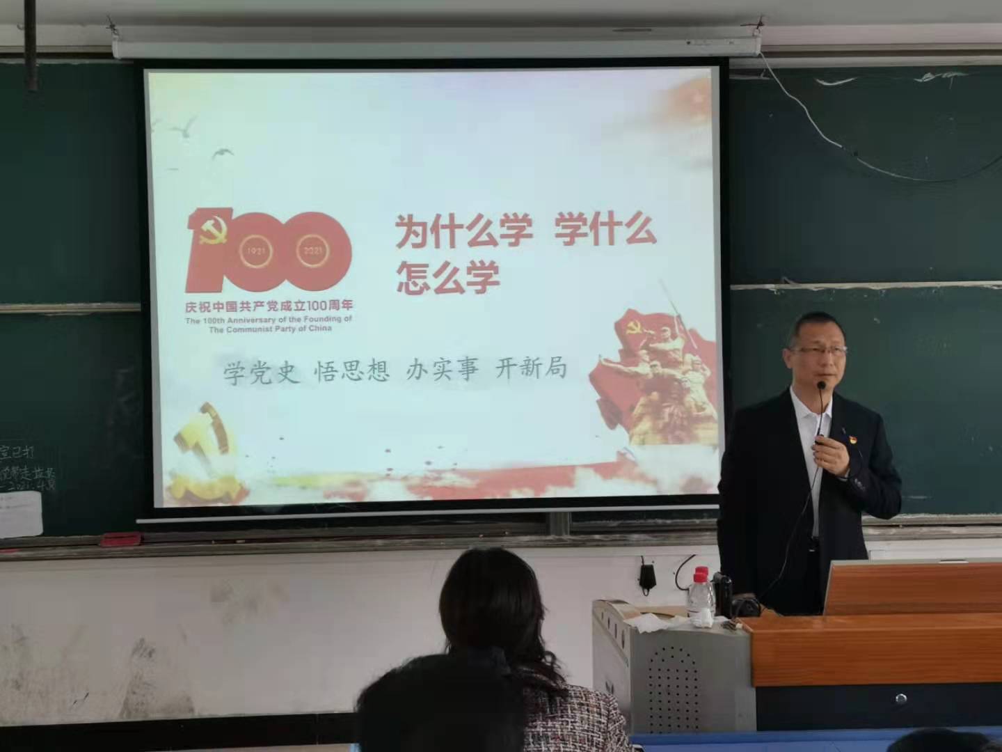 为深入开展党史学习教育活动,进一步增强全院师生爱党爱国爱校情怀, 4月15日下午,我院举办党史学习教育宣讲报告会,党史学习教育校党委宣讲团成员、党委常委、宣传部部长李裕福以《学百年党史 育时代新人》为题,为学院全体党员、科级干部、团学骨干上了一堂深刻和生动的党史学习教育课。报告会由学院党委书记胡闽华主持。