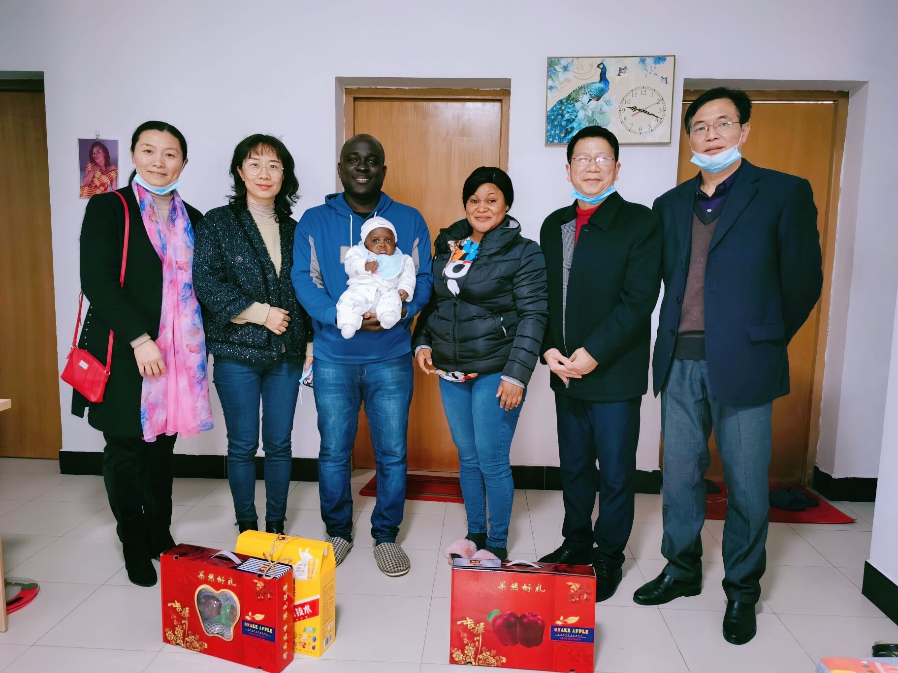 我院有3名外籍教师和9名学生因疫情原因不能回家过春节,学院领导十分关心寒假留校外籍教师和学生,特意在春节小年来到外籍教师家中和学生宿舍送上节日的问候,祝福他们新春快乐!