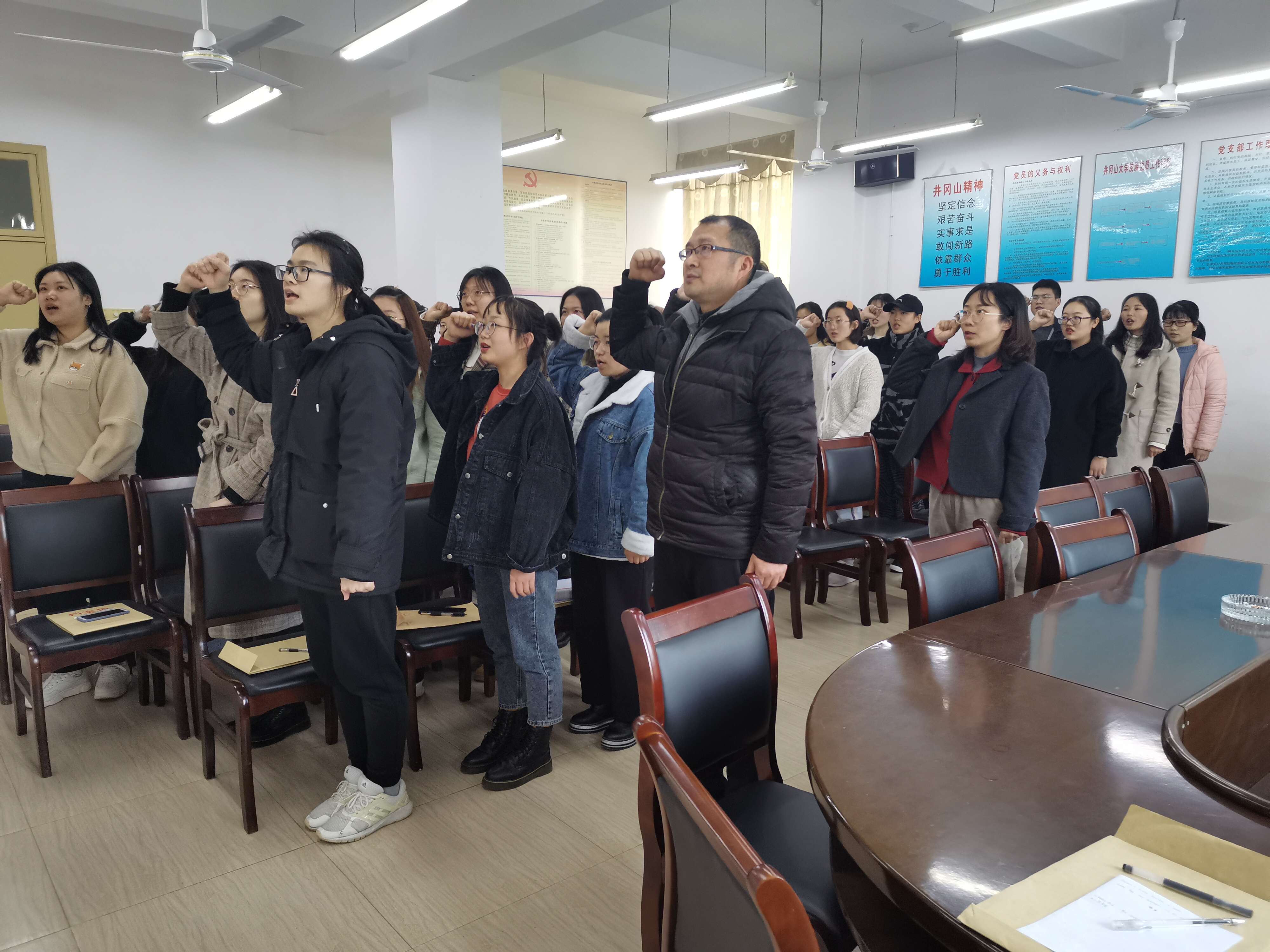 12月29日,外国语学院在党员活动室举行新党员入党宣誓仪式和集体谈话,学院专职组织员主持,学院党委书记、本学期新发展的党员参加。