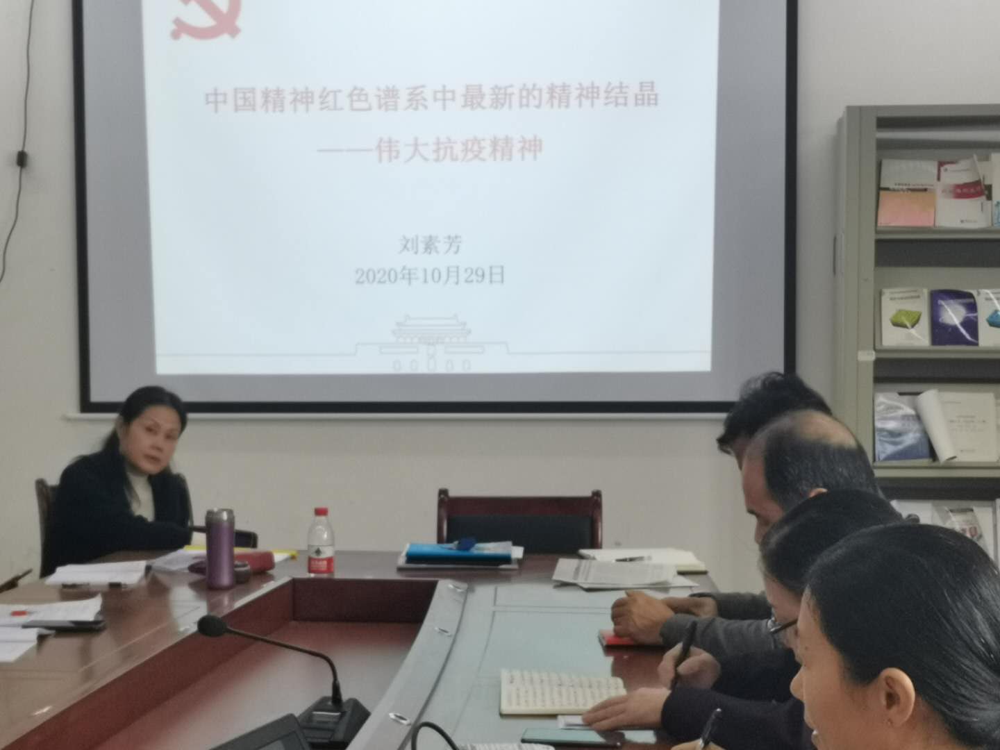 会上,副院长陈小曼以“不忘党恩,坚决做到‘两个维护’”、副院长刘素芳以“中国精神红色谱系中最新的精神结晶—伟大抗疫精神”为题分别为全体党员上党课。