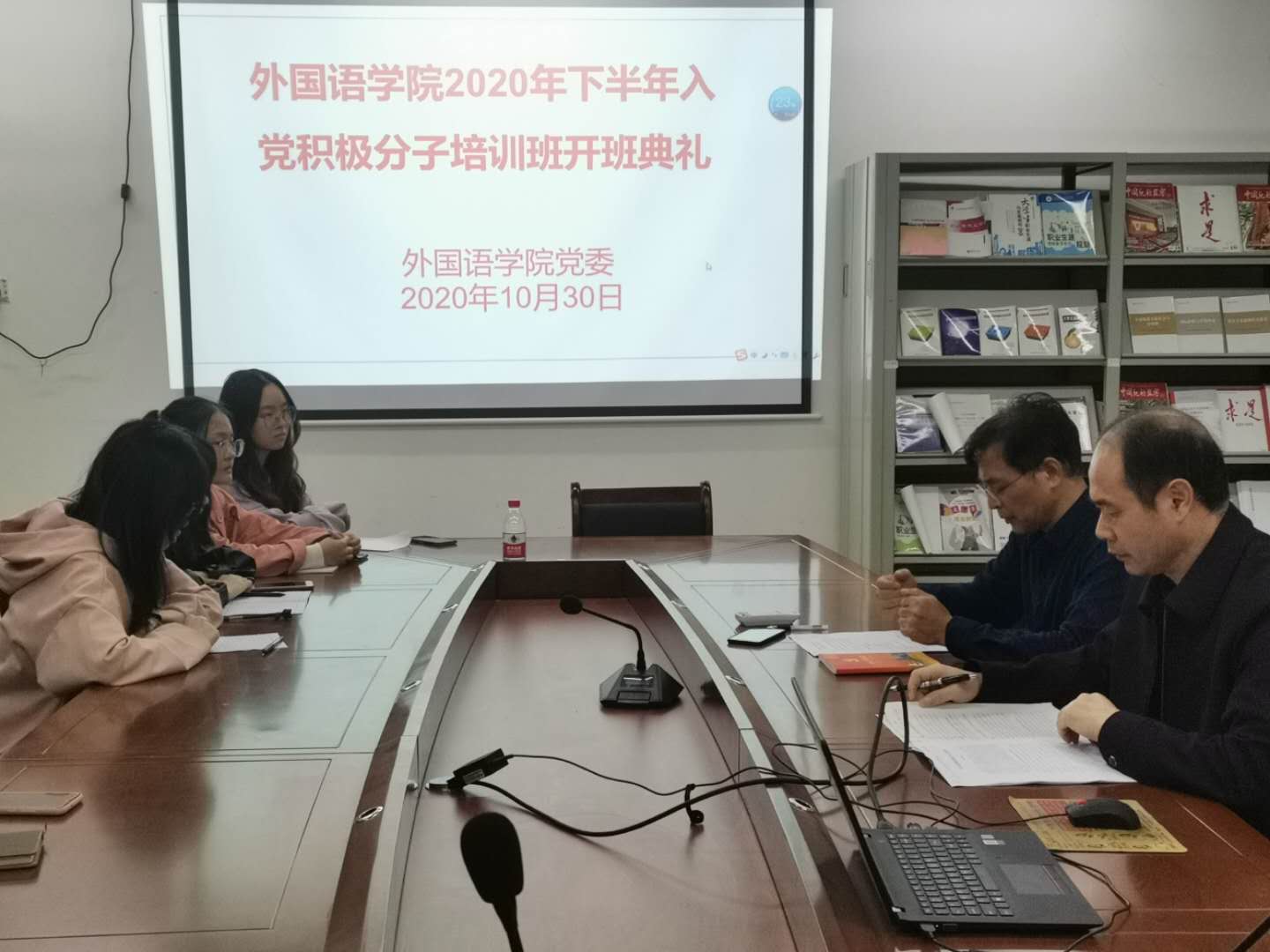 10月30日下午,学院2020年下半年入党积极分子培训班开班典礼在六楼党员活动室举行。学院领导,专职组织员及30名入党积极分子参加了本次开班典礼。开班典礼由学院党委副书记李明敏主持。