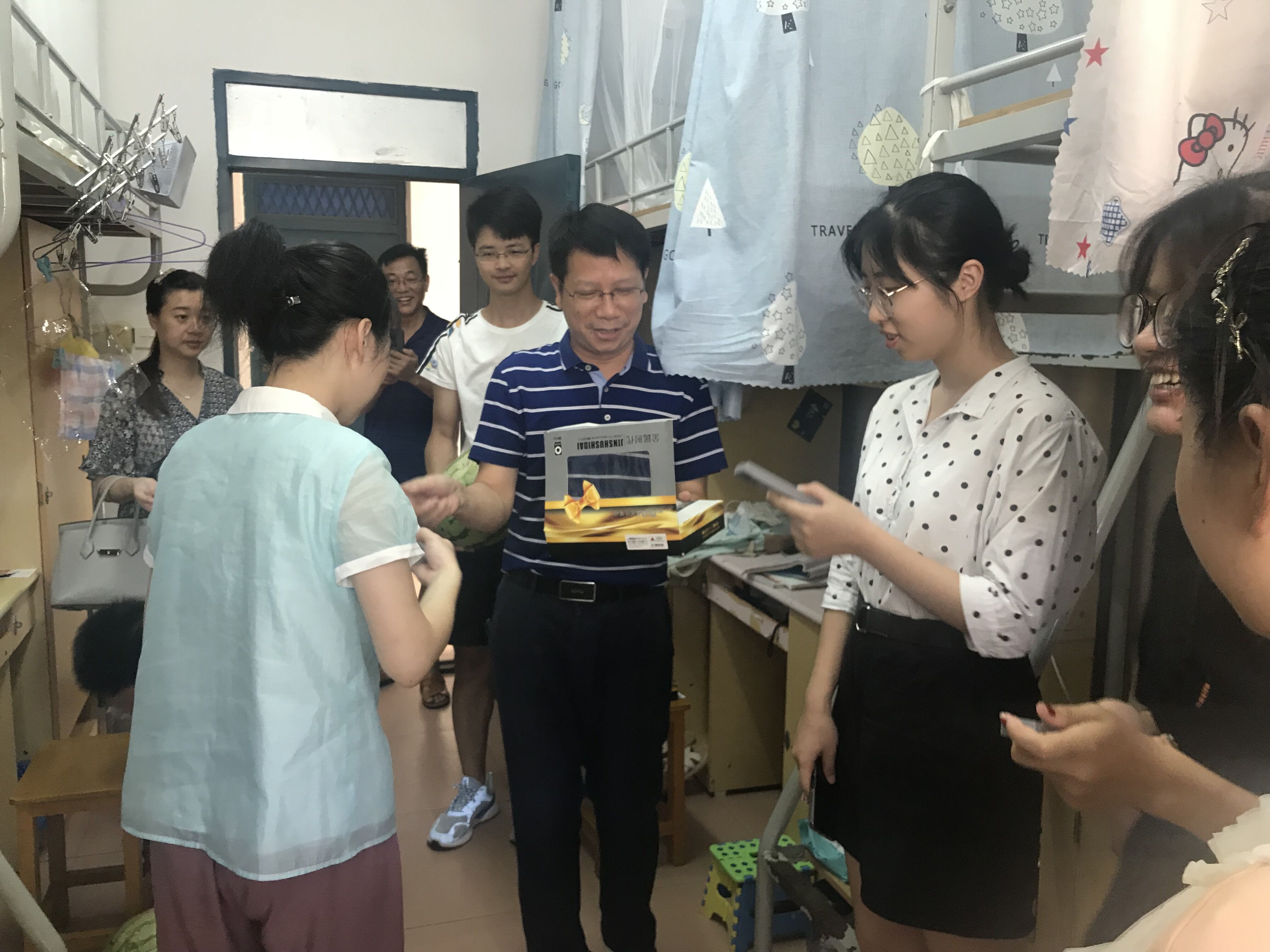 为了更好地了解留校考研学生的学习、生活状况,7月24日上午,院长袁邦株、党委副书记李明敏、学生科科长周溪、副科长陈丰一行带着精美的礼物和水果前来看望考研留校学生。