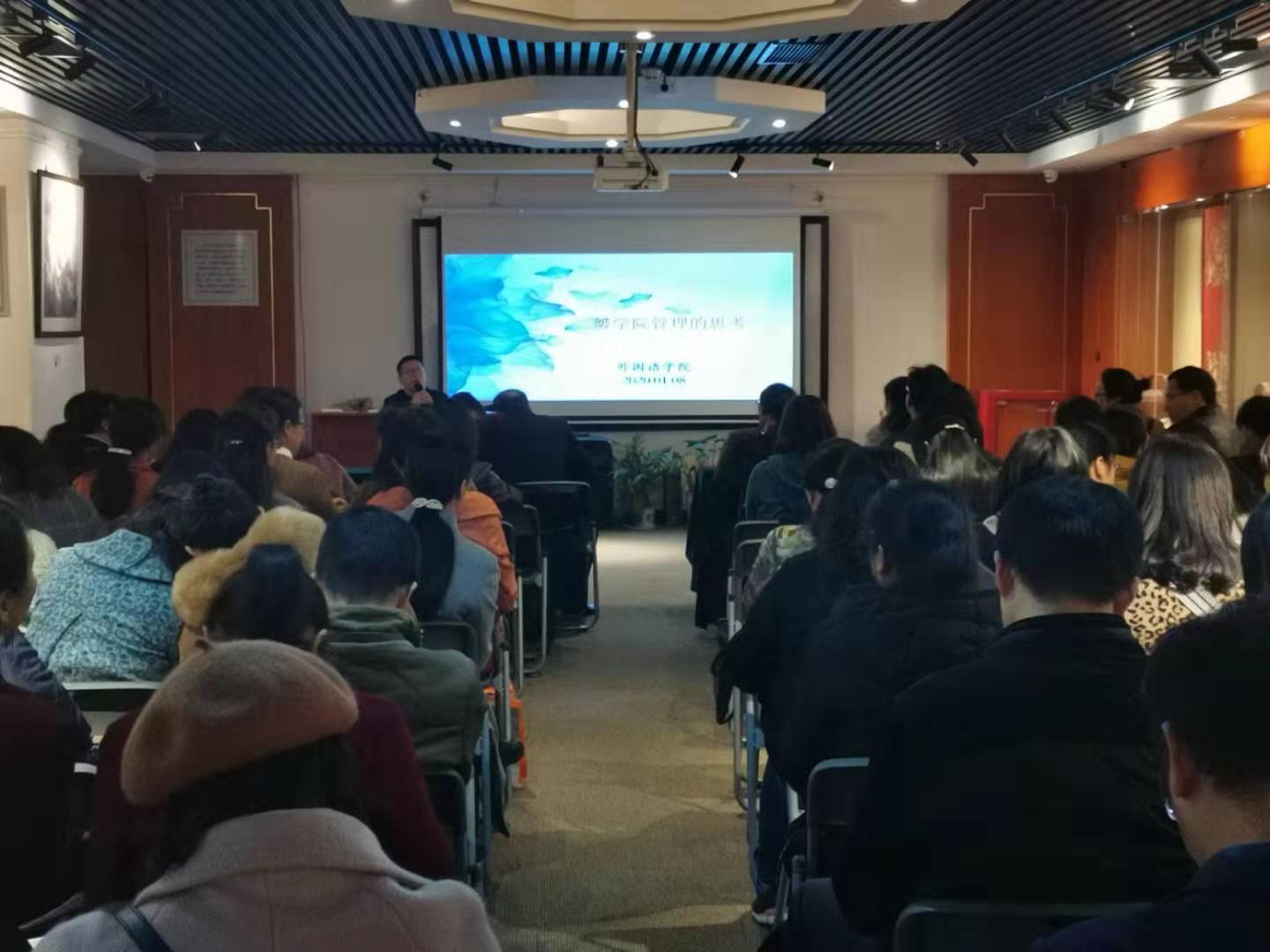 院长袁邦株对学院实行二级管理提出了具体的工作思路,对学校即将下达的各项目标任务进行了详细地解读。他要求全院教职工特别是高学历高职称的教师要加强科学研究,积极申报高质量课题,撰写高水平论文,为顺利完成目标任务奠定基础。要葆有“咬定青山不放松”的定力,焕发“越是艰险越向前”的干劲,以只争朝夕、不负韶华的精神状态,迎接新的一年的到来。