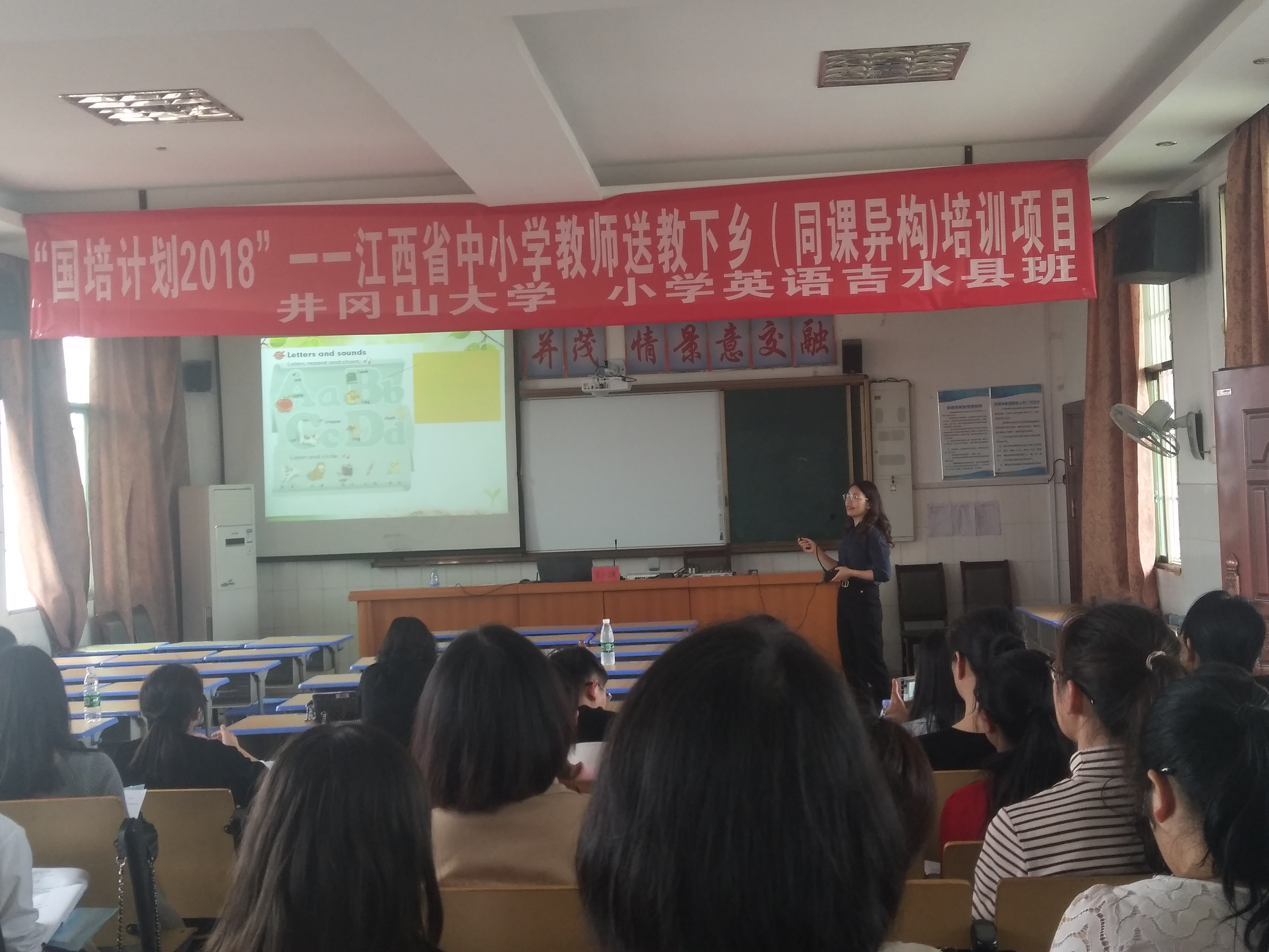 为加强小学教师队伍建设,促进义务教育均衡发展,根据《教育部办公厅 财政部办公厅关于做好2018年中小学幼儿园教师国家级培训计划实施工作的通知》(教育部教师厅【2018】3号)和江西省教育厅《关于组织实施“国培计划(2018)”——江西省中小学幼儿园教师培训项目的通知》精神,井冈山大学外国语学院在院长袁邦株教授的带领下,于4月19日-4月26日在吉水县教师进修学校举办 “国培计划2018”乡村小学英语同课异构送教下乡培训?活动。