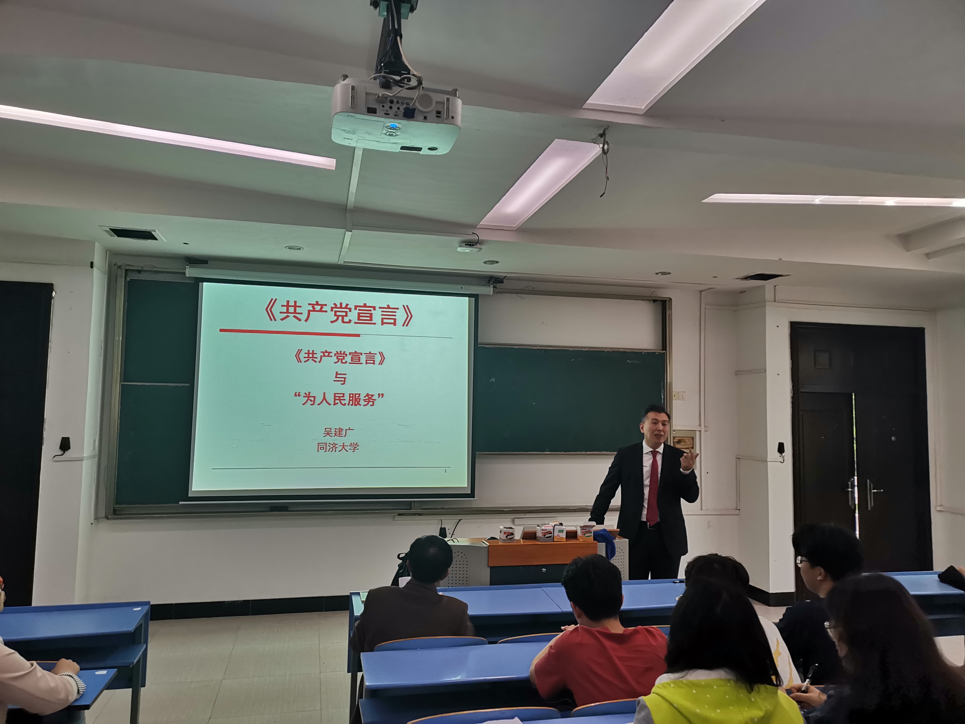 4月18日下午,同济大学文学研究所所长、德语系吴建广教授为我院师生作了一场题为《共产党宣言与为人民服务》的学术讲座。本次讲座由副院长康旭平教授主持,我院近百名师生到场聆听。
