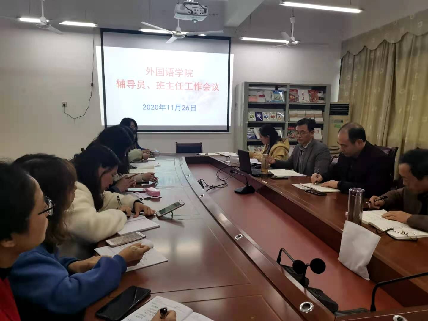 11月26日下午,学院在六楼党员活动室召开班主任、辅导员工作会议,学院党委书记马于强、副院长康旭平、全体班主任、辅导员参加。会议由党委副书记李明敏主持。