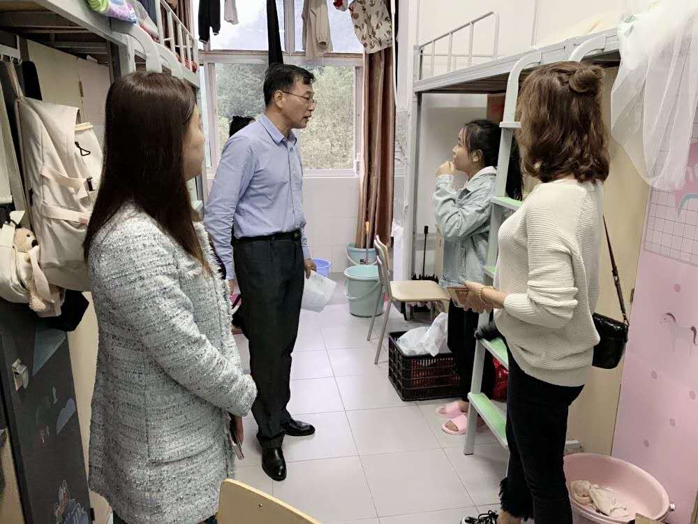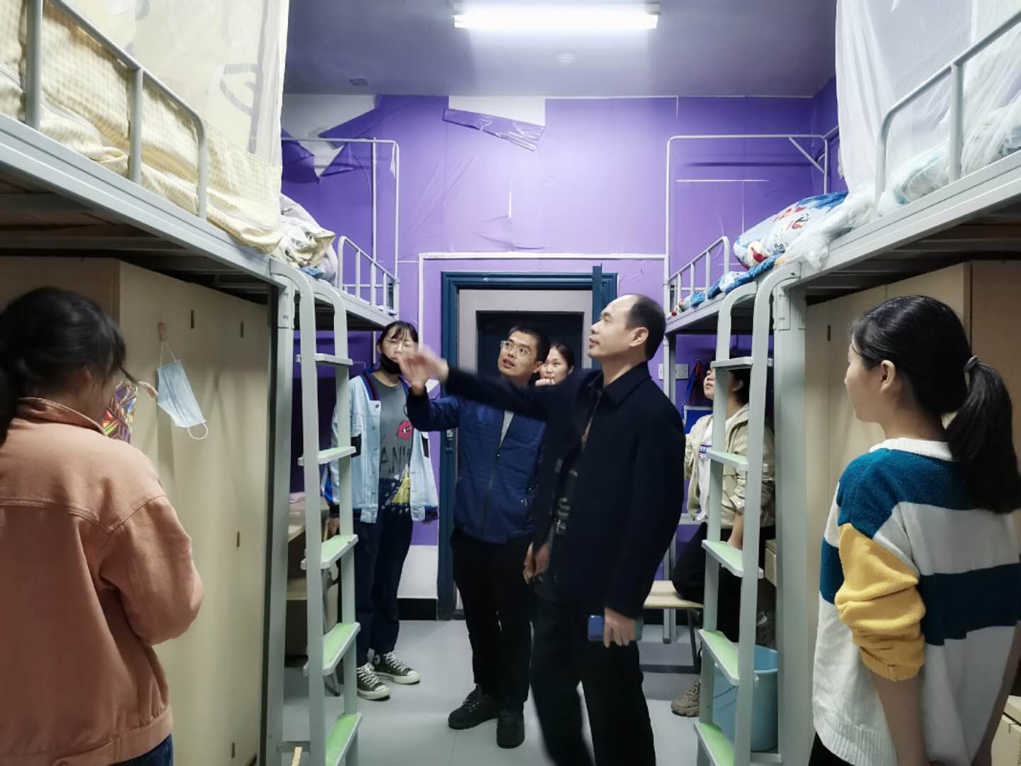 学院领导走访新生宿舍 2020年09月28日 团学活动 9月27日晚,学院党委书记马于强,院长袁邦株,党委副书记李明敏,副院长康旭平及各新生辅导员班主任、学生干部等一行走访了新生宿舍。 院领导走进各专业的新生宿舍,与新生们亲切交流,细心询问他们到校后的住宿、就餐等情况,询问他们有无生活上的不适应,了解新生入学后的需求,并提醒新生在平常的生活中,要有安全防范意识,务必注意财物安全、用电安全、人身安全,特别是要预防网络诈骗,做好宿舍卫生、加强内务整理,有困难及时向辅导员班主任反映。 分享到:QQ好友微信QQ空间新浪微博人人网复制网址打印