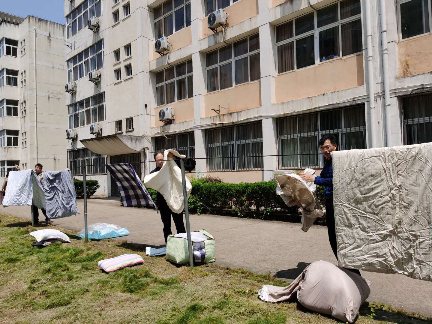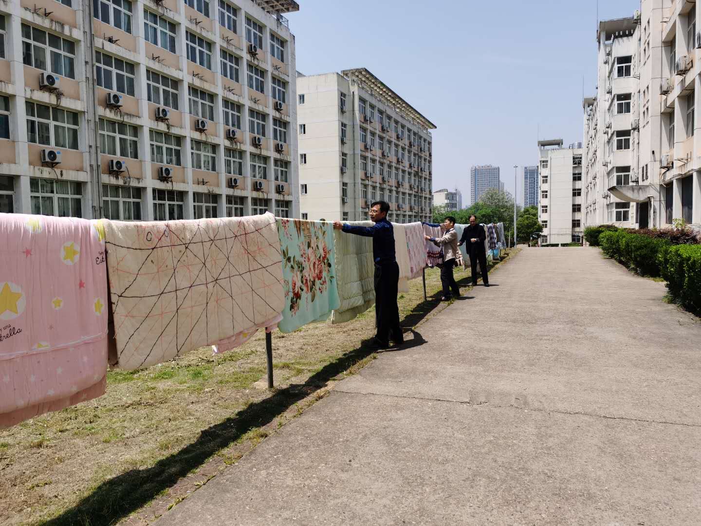 为充分做好学生返校开学准备,给学生营造一个温馨的“家”,4月28日,学院党委书记马于强、院长袁邦株、党委副书记李明敏带领学生科全体干部深入学生宿舍排查安全隐患,并帮助学生晾晒被子。