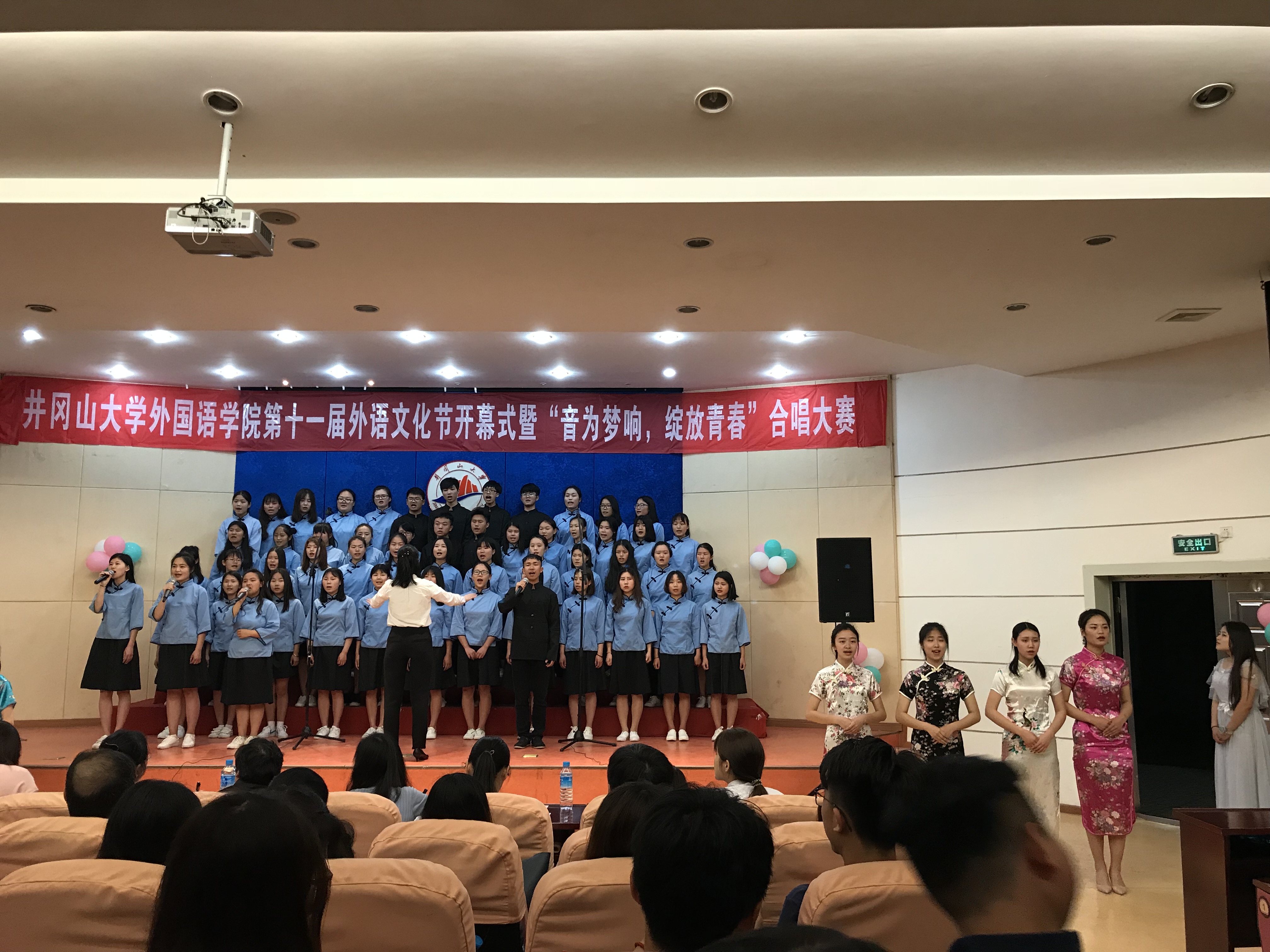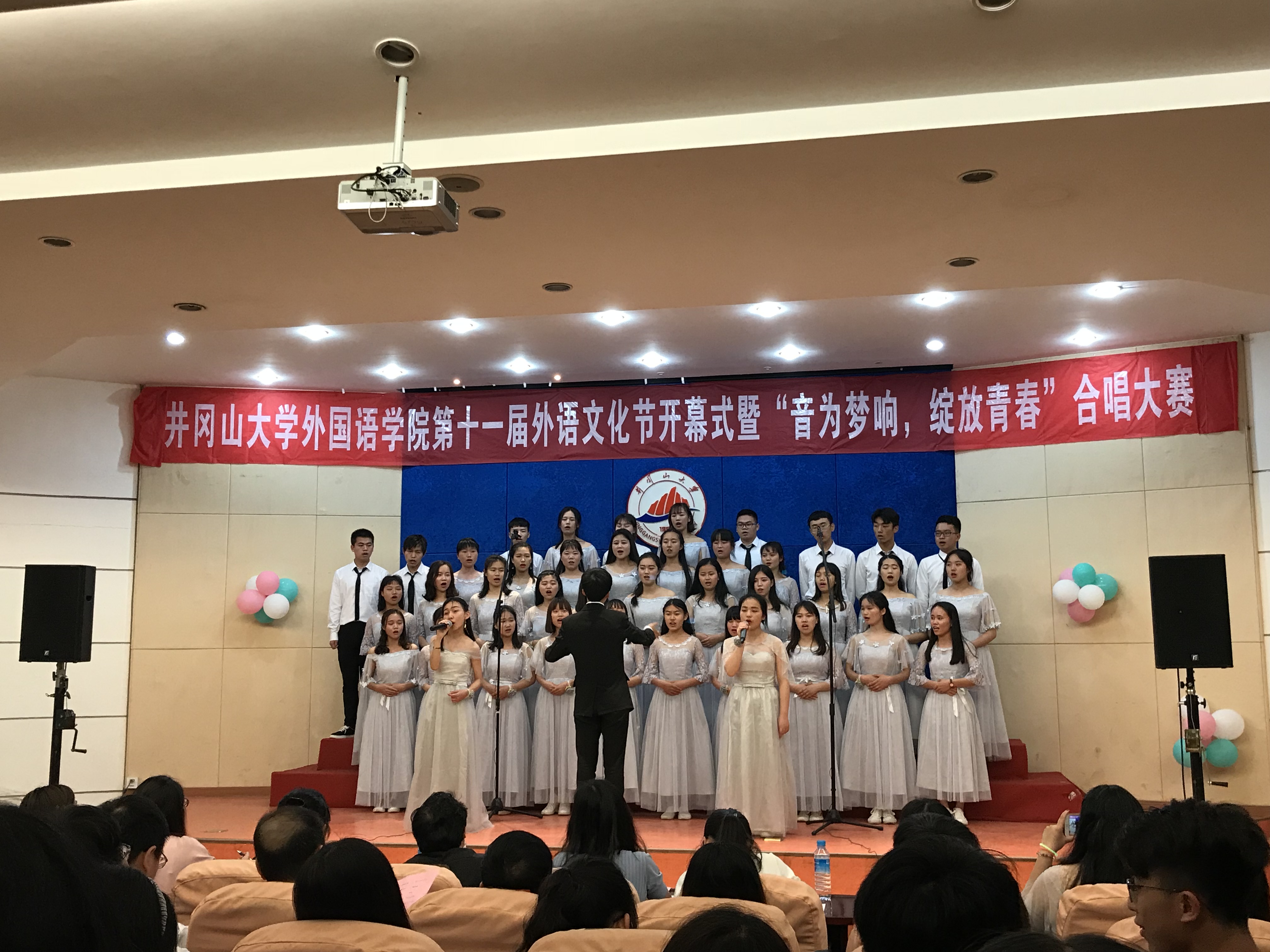 学院第十一届外语文化节开幕式暨“音为梦响,绽放青春”外文合唱大赛于4月22日晚上在十栋学术报告厅顺利举行。井冈山大学团委书记李泉、学院领导出席本次活动。