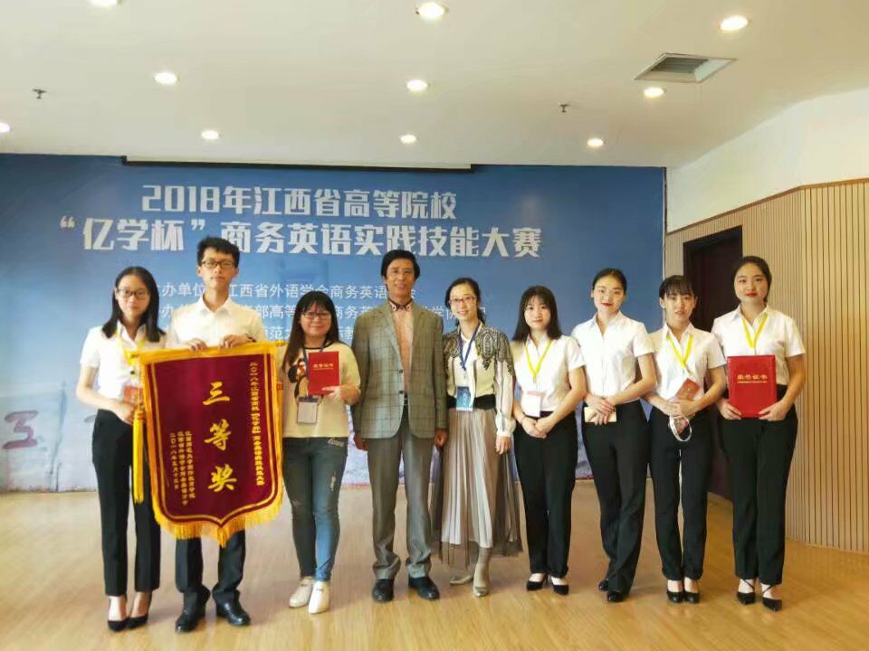 5月12日至13日,江西省首届高等院校“亿学杯”商务英语实践技能大赛在江西师范大学瑶湖校区举行。此次大赛的主题是“‘互联网+’时代的机遇与挑战”。经过几轮激烈比拼,外国语学院参赛队获得团体赛三等奖,罗艳、李朝华两位老师荣获“优秀指导教师”称号。