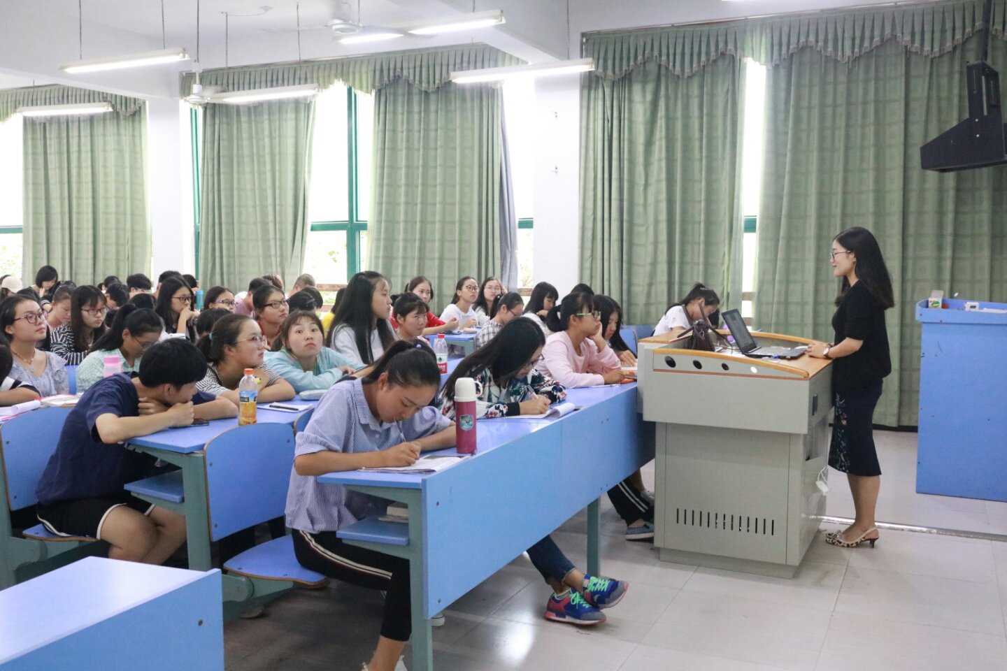 肖琳博士分别从考研的准备、要求等方面向学生做了详尽地介绍。同时又从师资力量、研究生待遇、学生培养与就业、招生目录与考试科目等方面介绍了江西财经大学外国语学院研究生招生的有关事宜。相信通过这次讲座广大学生一定会树立更加明确的目标、坚定信心,为2018年硕士研究生考试做好更加充分的准备。