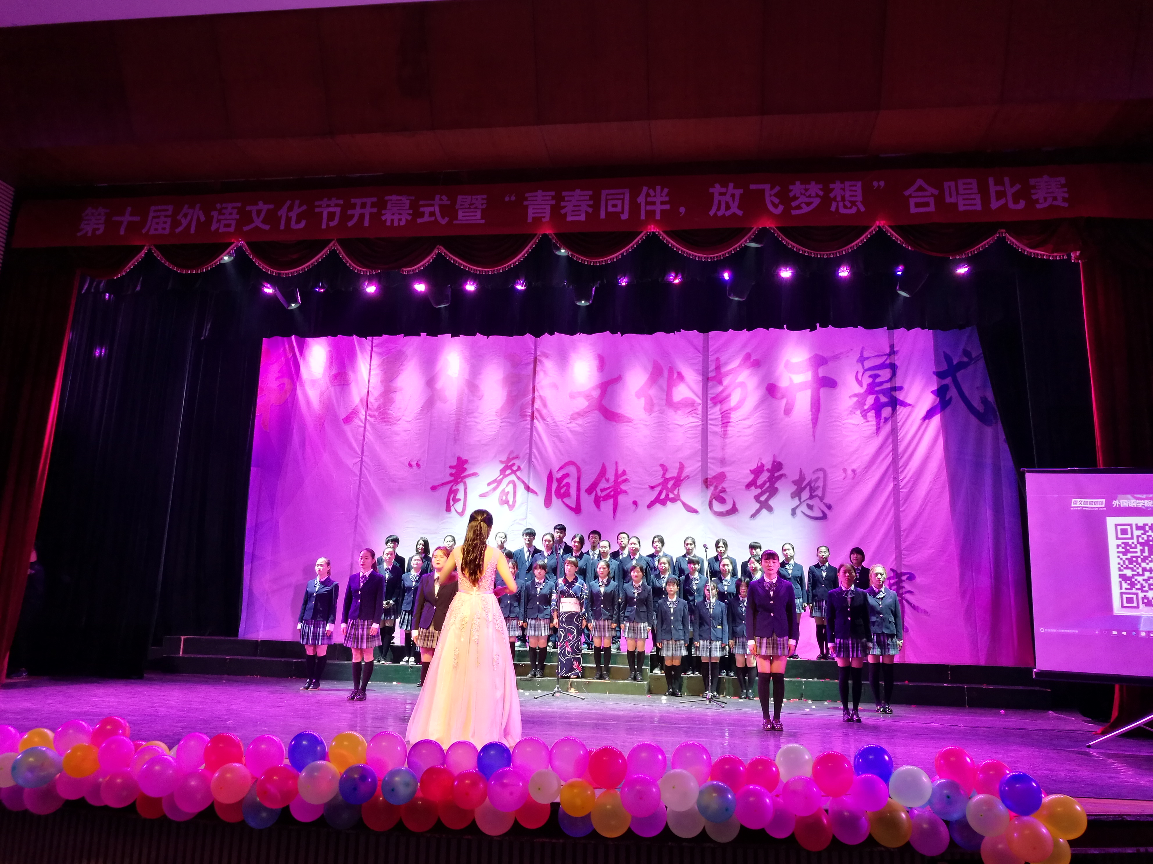 4月25日晚7:00,学院第十届外语文化节开幕式暨“青春同伴,放飞梦想”外文合唱比赛在学校音乐厅拉开帷幕,校团委副书记胡闽华、学院院长袁邦株教授、副院长康旭平教授出席了开幕式并观看比赛。外文合唱比赛的评委由学院英语系尹根德教授、亚欧语系刘求应老师、祝燕云老师、英语系匡凤老师、公共外语教学部彭羽婷老师担任。
