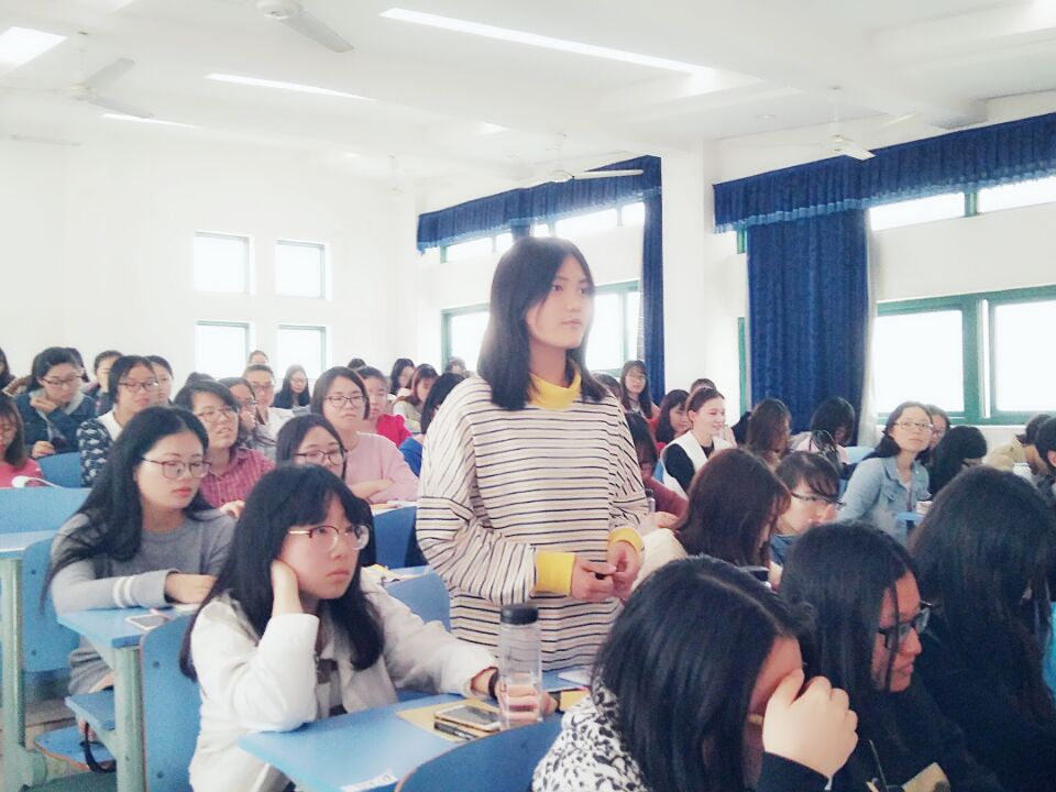 课堂上大家一起学习《井冈山大学团委“学习习近平总书记重要讲话做合格共青团员”教育实践实施方案》。