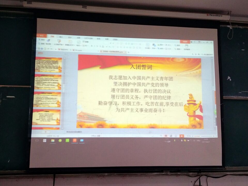 最后,周溪带领大家重温入团誓词,增强了团员意识,强化了组织意识和组织纪律观念;要求团员青年在政治上合格、在品行上合格、在作为上合格,对党绝对忠诚,自觉践行党的理论和路线方针政策,自觉践行社会主义核心价值观,在青年学生中发挥模范带头作用,在经济社会发展各项急难险重任务中当好生力军和突击队,以实际行动迎接党的十九大胜利召开。