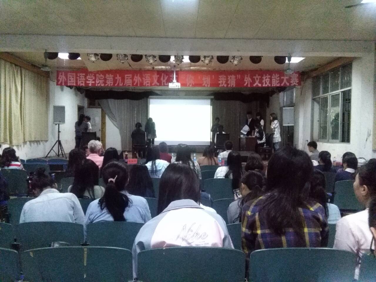 5月10号下午,我院第九届外语文化节之“你‘划’我‘猜’”决赛于六栋演奏厅顺利举行。出席本次比赛的评委分别是学院高娅轩老师、梁俊老师、王婷老师和欧阳璐老师。