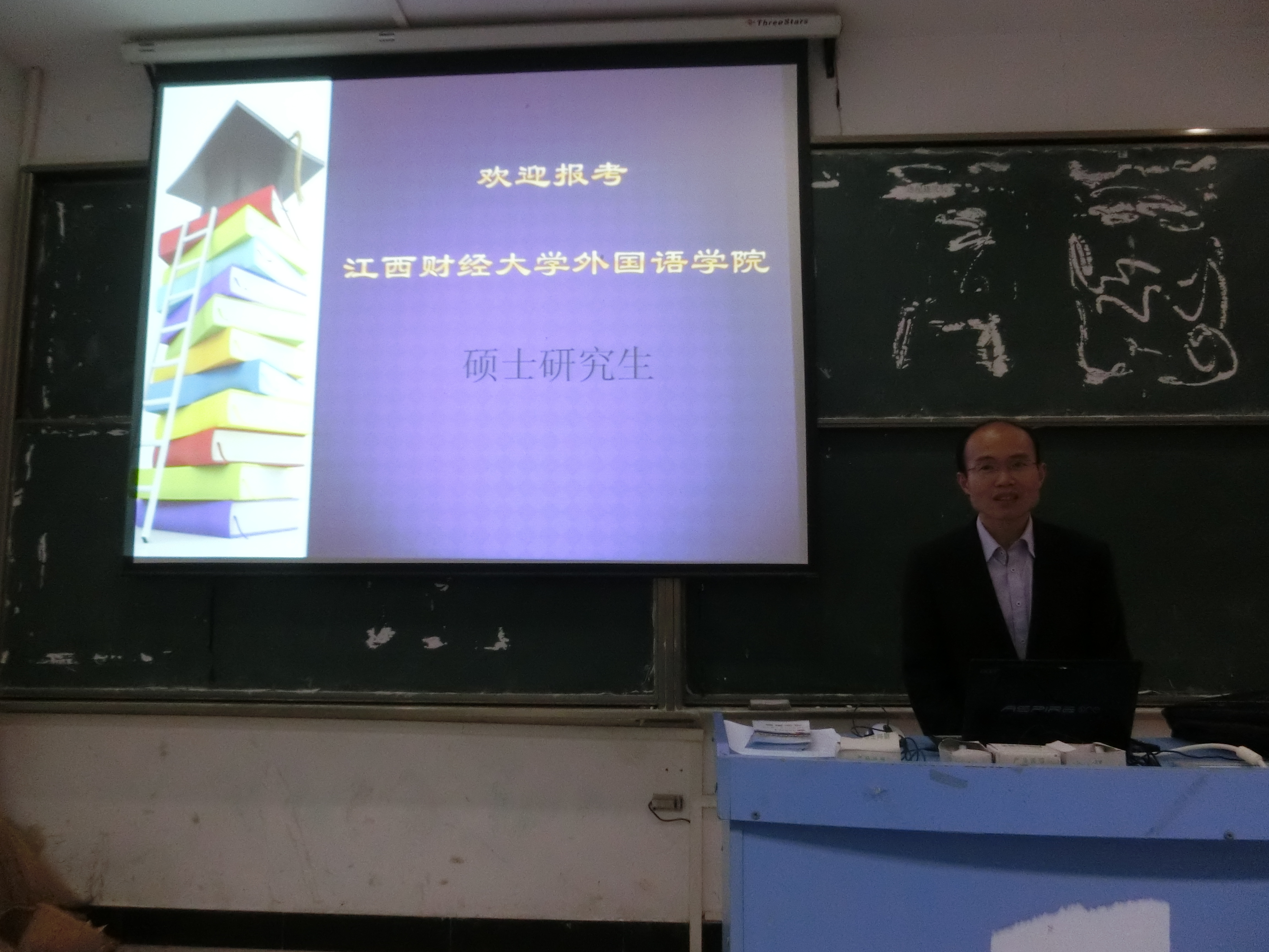 首先,李春长教授对江西财经大学外国语学院的外国语言文学一级学科硕士点研究生招考的师资力量、科研情况以及奖励制度进行了介绍,并积极动员我院学生报考。